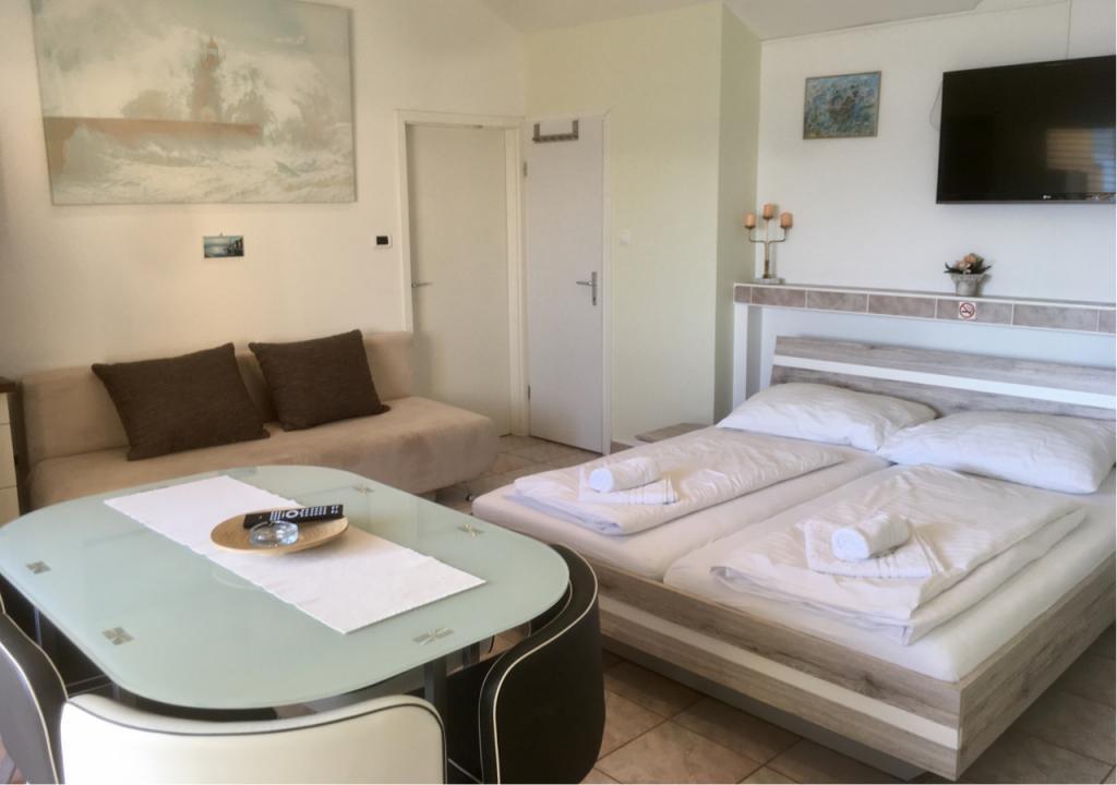 Die Wohnung ist ordentlich, sauber und geschmackvoll eingerichtet und gut ausgestattet. Es stehen Liegestühle, Sonnenschirme, Bretter, Fahrräder und ein Kinderspielzimmer zur Verfügung. Neben der Lage (erste Reihe zum Meer) sind wir von der sehr freundlichen Gastgeberin Branka begeistert, die den Gästen jederzeit zur Verfügung steht. Unaufdringlich, fröhlich, wohlmeinend und herzlich kann Frau Branka allen Mietern ein Beispiel dafür sein, was ein guter Gastgeber sein sollte. Wir empfehlen es jedem, ob jung oder alt, sowie Familien mit Kindern. Das im Preis inbegriffene Frühstück ist abwechslungsreich und für jeden Geschmack etwas dabei.