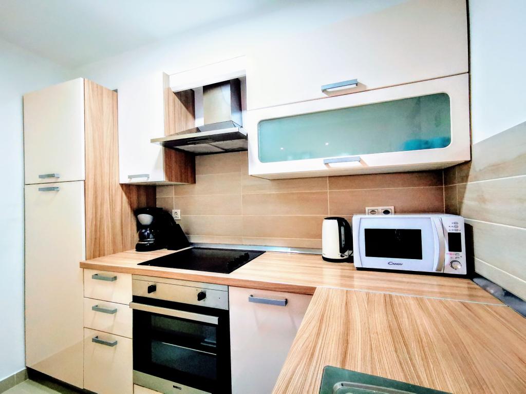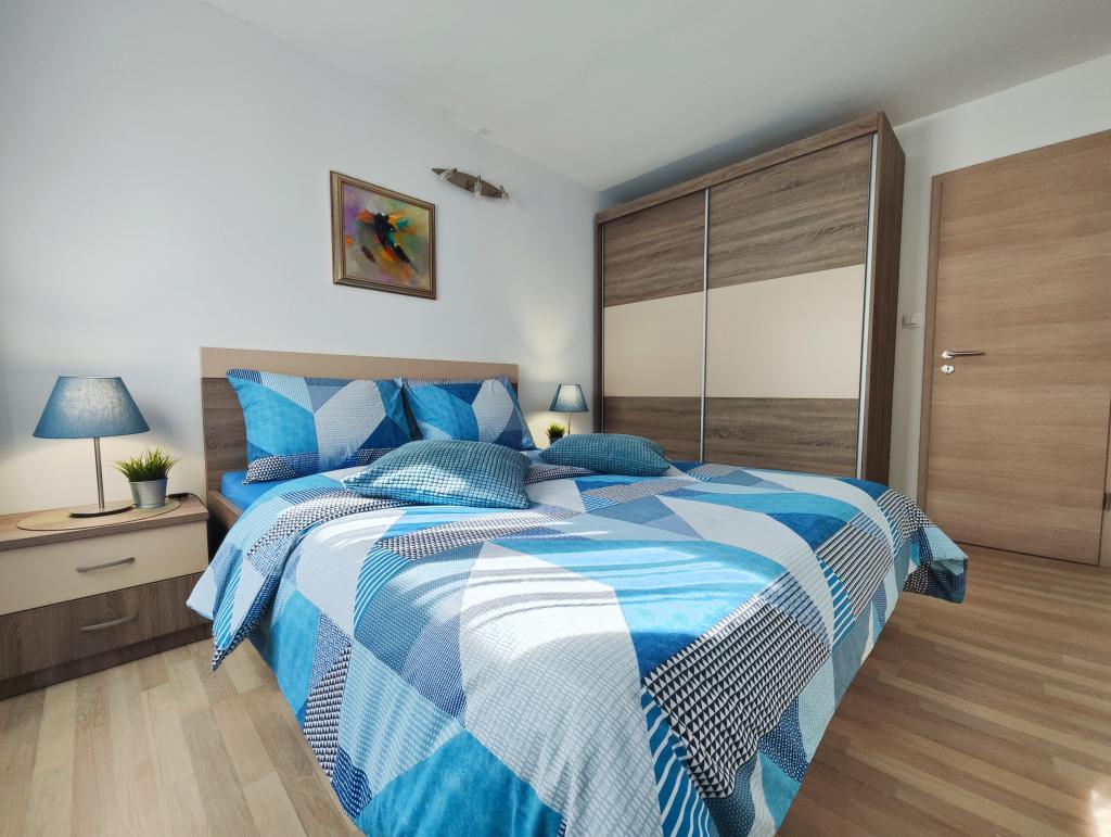 1. Maisonette-Apartment mit einem Schlafzimmer (35 m²), zweistöckig und besteht aus: Schlafzimmer mit Doppelbett, Badezimmer mit Dusche; Wohnzimmer mit Küche (Herd, Kühlschrank, Wasserkocher, Kaffeemaschine...); SAT-TV, WLAN, Klimaanlage, Waschmaschine. 2. Apartment mit einem Schlafzimmer (60 m²) im Erdgeschoss und besteht aus: 1 Schlafzimmer mit Doppelbett, Badezimmer mit Dusche, Wohnzimmer mit Sofa, Esszimmer, Küche (Herd, Kühlschrank, Geschirrspüler, Wasserkocher, Kaffeemaschine, Mikrowelle, Toaster,...); SAT-TV, WLAN, Klimaanlage, Wäscheperlen. 3. Maisonette-Apartment mit drei Schlafzimmern (90 m²) auf zwei Etagen und besteht aus: 1. Stock - 1 Schlafzimmer mit Doppelbett, 1 Schlafzimmer für eine Person, Badezimmer mit Dusche, Balkon; im 2. Stock - 1 Schlafzimmer mit Doppelbett, Badezimmer mit Dusche, Wohnzimmer, Esszimmer, Küche (Herd, Kühlschrank, Geschirrspüler, Wasserkocher, Kaffeemaschine, Mikrowelle, Toaster...), Balkon; SAT-TV, WLAN, Klimaanlage, Waschmaschine.