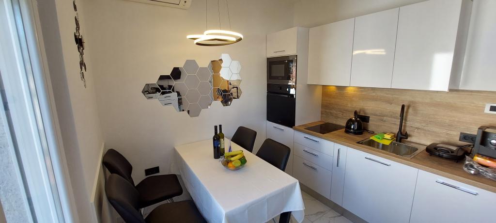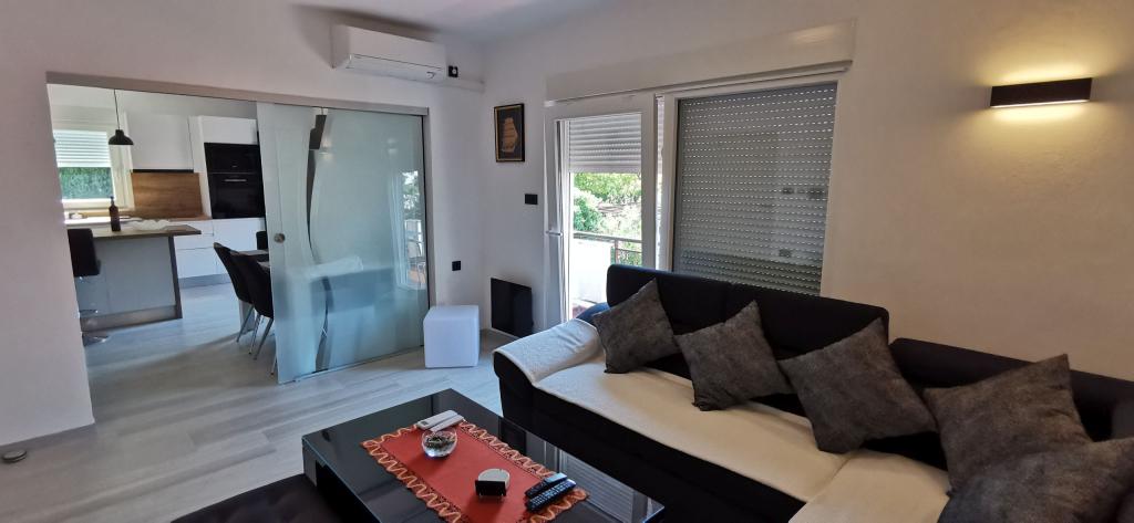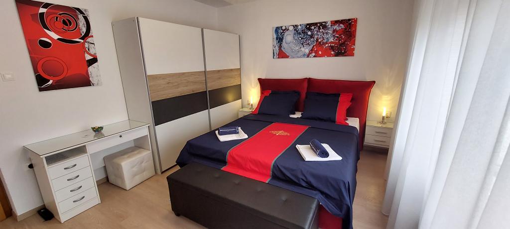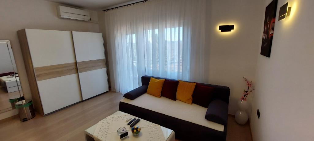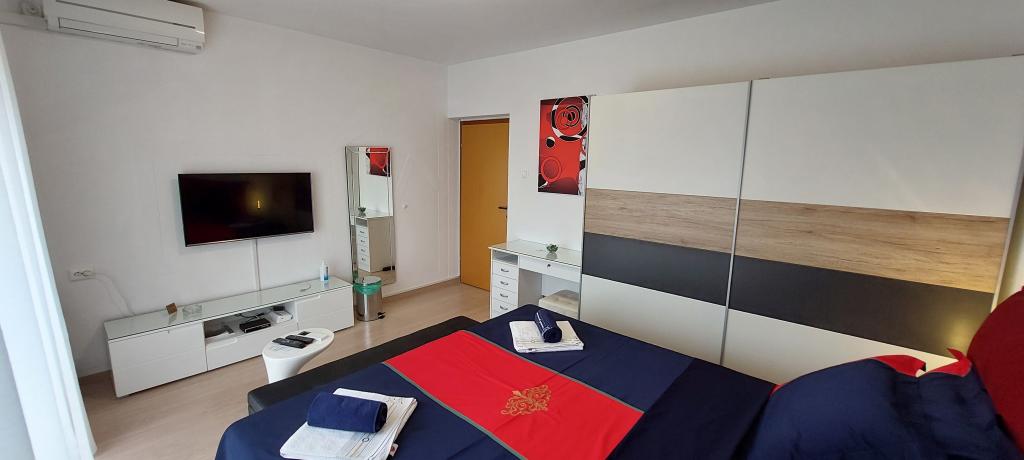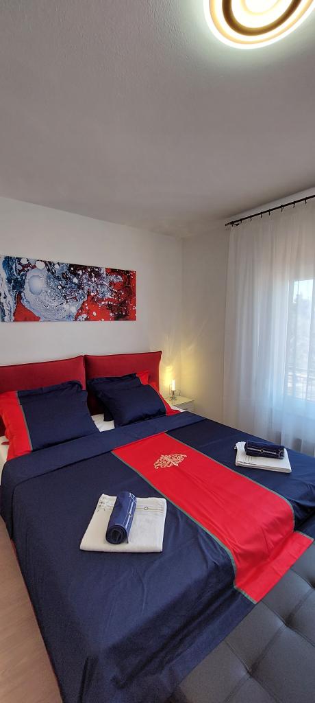 Vollständig und modern ausgestattete zwei Apartments in Strandnähe im Zwischengeschoss (Apartment Perunika) und im ersten Stock (Apartment Bougenvilija). Beide Wohnungen haben zwei Balkone und gesicherte Parkplätze vor dem Haus. Ein Schlafzimmer mit Doppelbett, ein Wohnzimmer mit Schlafsofa und eine Küche mit Essbereich sind klimatisiert. Internet ist kostenlos. Das Gebäude liegt 5 Gehminuten vom Zentrum und weniger als 2 Minuten (100 Meter) vom Strand entfernt.