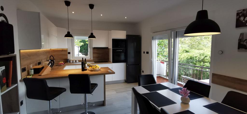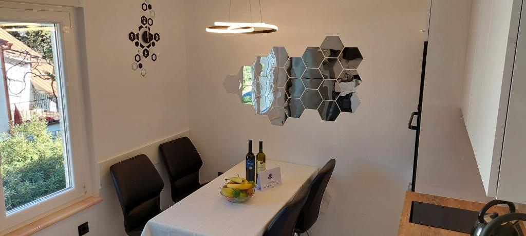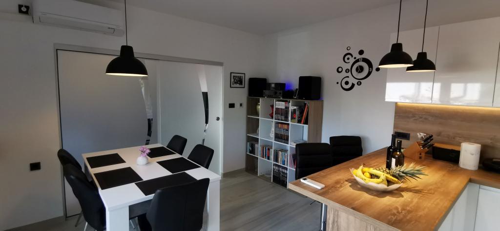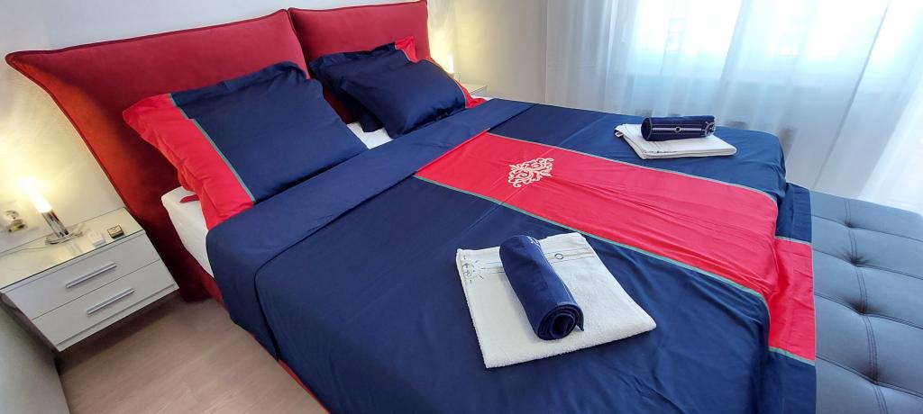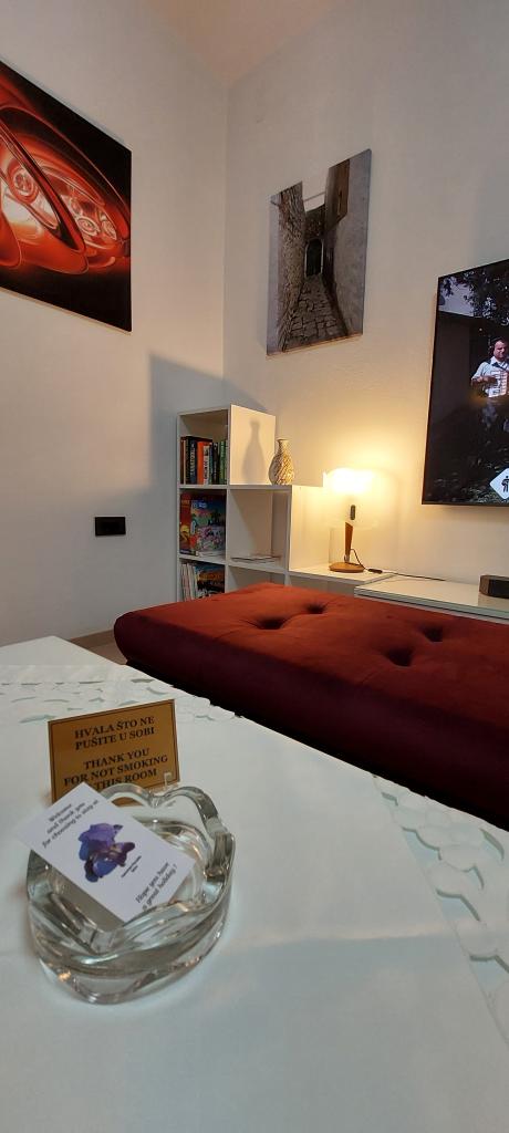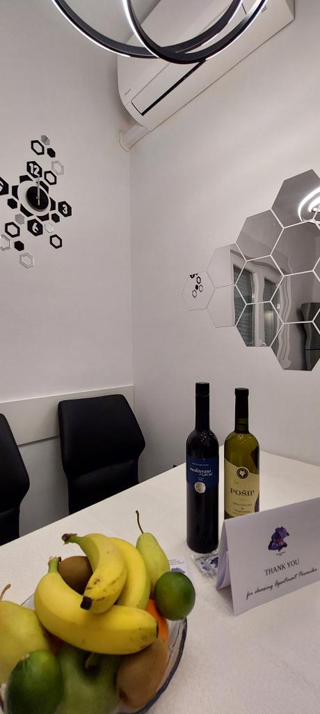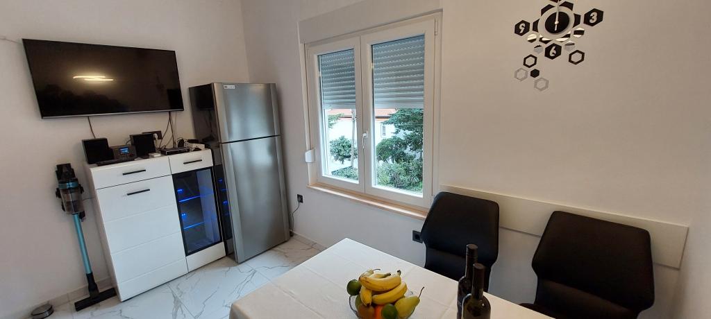 Vollständig und modern ausgestattete zwei Apartments in Strandnähe im Zwischengeschoss (Apartment Perunika) und im ersten Stock (Apartment Bougenvilija). Beide Wohnungen haben zwei Balkone und gesicherte Parkplätze vor dem Haus. Ein Schlafzimmer mit Doppelbett, ein Wohnzimmer mit Schlafsofa und eine Küche mit Essbereich sind klimatisiert. Internet ist kostenlos. Das Gebäude liegt 5 Gehminuten vom Zentrum und weniger als 2 Minuten (100 Meter) vom Strand entfernt.