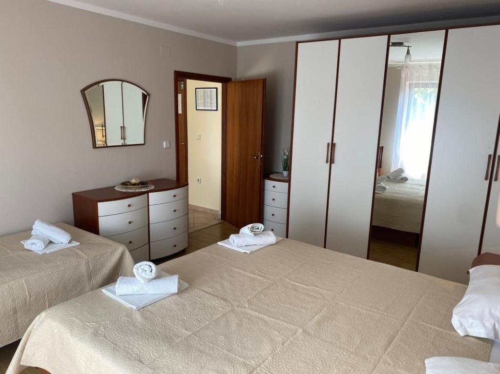 Die Wohnungen unterschiedlicher Größe befinden sich in einem Familienhaus in einer der schöneren und ruhigeren Straßen in Selc, einer Siedlung, die zur Stadt Crikvenica gehört, nur etwa 250 m oder etwa 3-4 Gehminuten vom Meer entfernt und der Strand. Es ist sehr einfach, zum Haus zu gelangen, und es ist nicht schwer, es zu finden, indem man direkt nach der Bushaltestelle von der Hauptstraße, der Autobahn, direkt in Richtung Meer abbiegt. Das Haus liegt etwa 350 m vom Zentrum von Selce oder etwa 5 Gehminuten entfernt. Dort gibt es Geschäfte, den Konzum-Markt, ein Postamt, Geldautomaten, eine Apotheke, ein Touristeninformationszentrum, Restaurants, Kaffeebars, Konditoreien, Souvenirläden. Hafen. Ein kleiner Laden befindet sich ca. 100 m vom Haus entfernt. . Etwa 100 m vom Haus entfernt befindet sich auch eine kleine Klinik. Das Zentrum von Crikvenica ist etwa 3 km entfernt und kann über eine Promenade am Meer entlang erreicht werden. Am nächsten Strand befindet sich ein Tauchzentrum nur ca. 250 m oder 3-4 Gehminuten vom Haus entfernt, und die Strände von Tunar und Poli Mora sind ca. 350 m vom Haus entfernt.