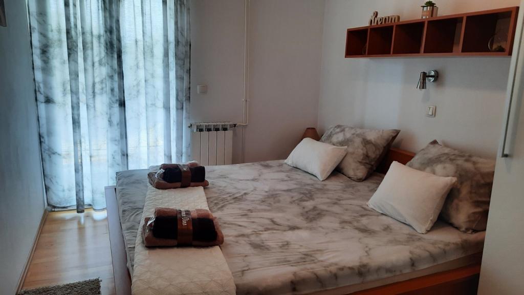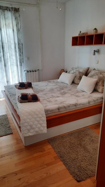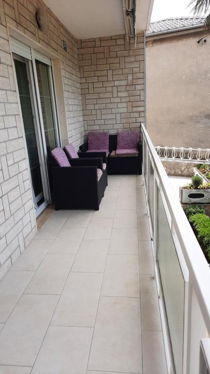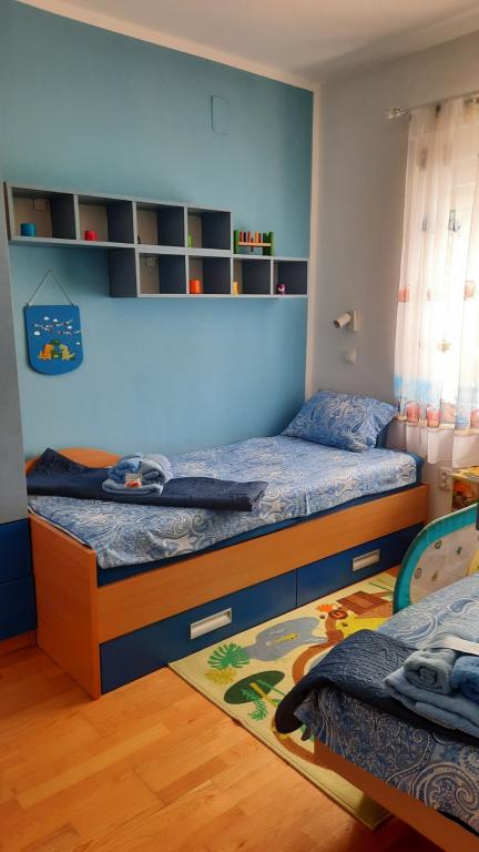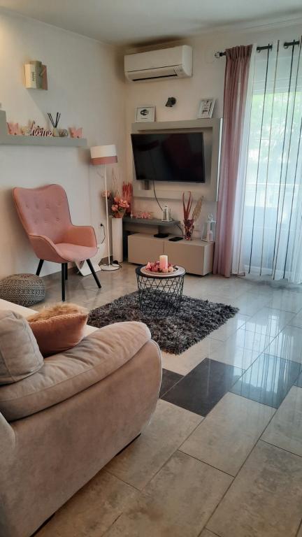 Das Apartment Branka liegt nur 10 Minuten vom Zentrum und 5 Minuten vom Hauptstrand entfernt. Es liegt in einem ruhigen Teil der Stadt, umgeben von viel Grün und einem großen Garten, den Kinder aufgrund des vielfältigen Angebots an Kinderspielgeräten wie Trampolin, Rutsche am meisten genießen. Es ist klimatisiert. Es verfügt über 2 Zimmer, eine Küche, die mit dem Wohnzimmer verbunden ist, ein Badezimmer, einen großen Garten und eine Terrasse mit Meerblick.