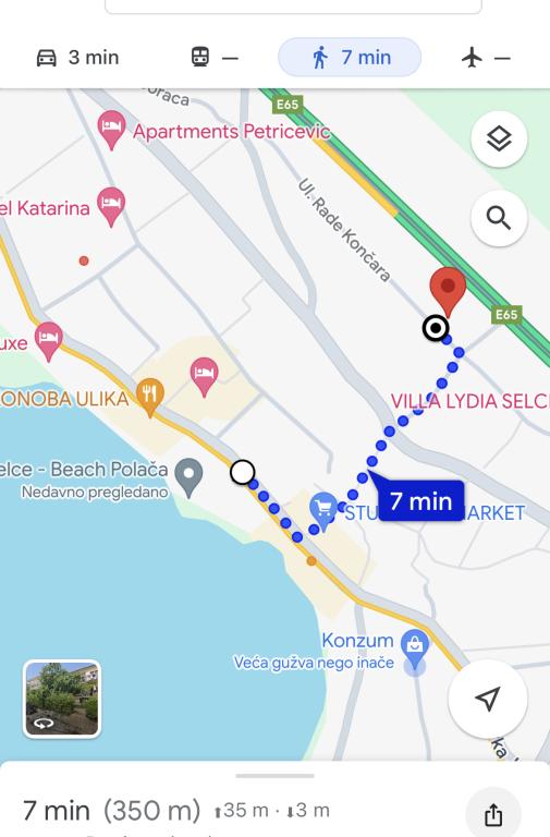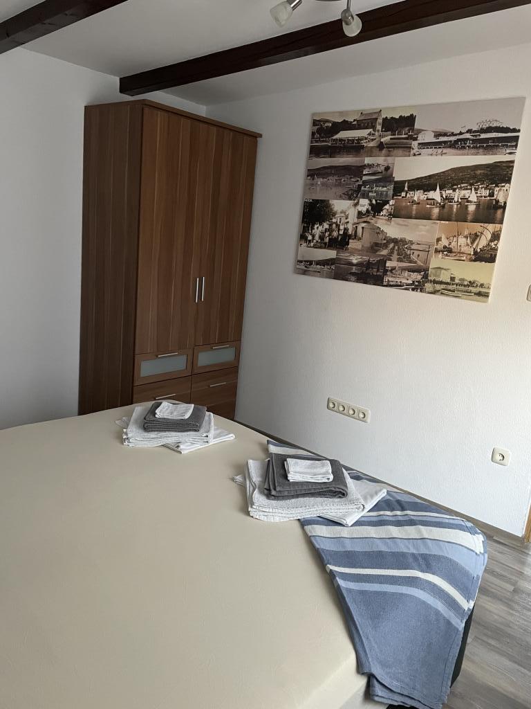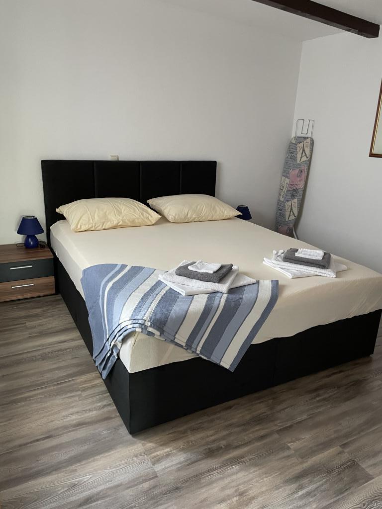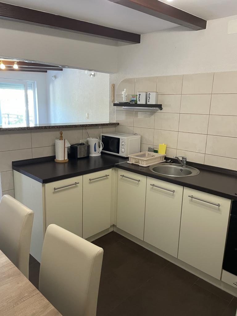 Die Wohnung befindet sich im 1. Stock eines Einfamilienhauses mit großer separater Terrasse und Blick auf das Meer. Es liegt ca. 350 m vom Meer, dem Strand und dem Stadtzentrum entfernt. Es besteht aus zwei Doppelzimmern, einem Wohnzimmer, einer ausgestatteten Küche mit Esszimmer und einem Badezimmer (Waschmaschine). Voll ausgestattet, WLAN, Klimaanlage, Parkplatz im Hof des Hauses.