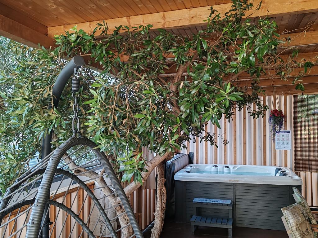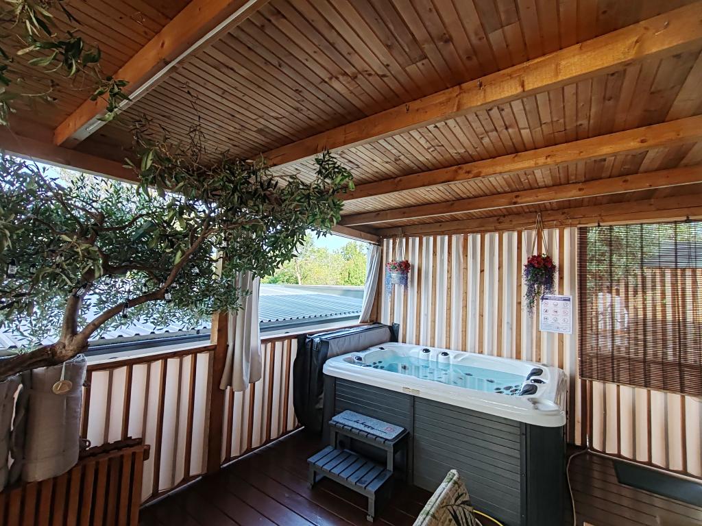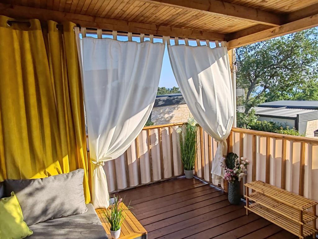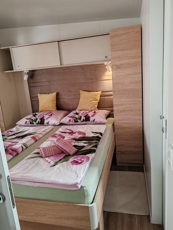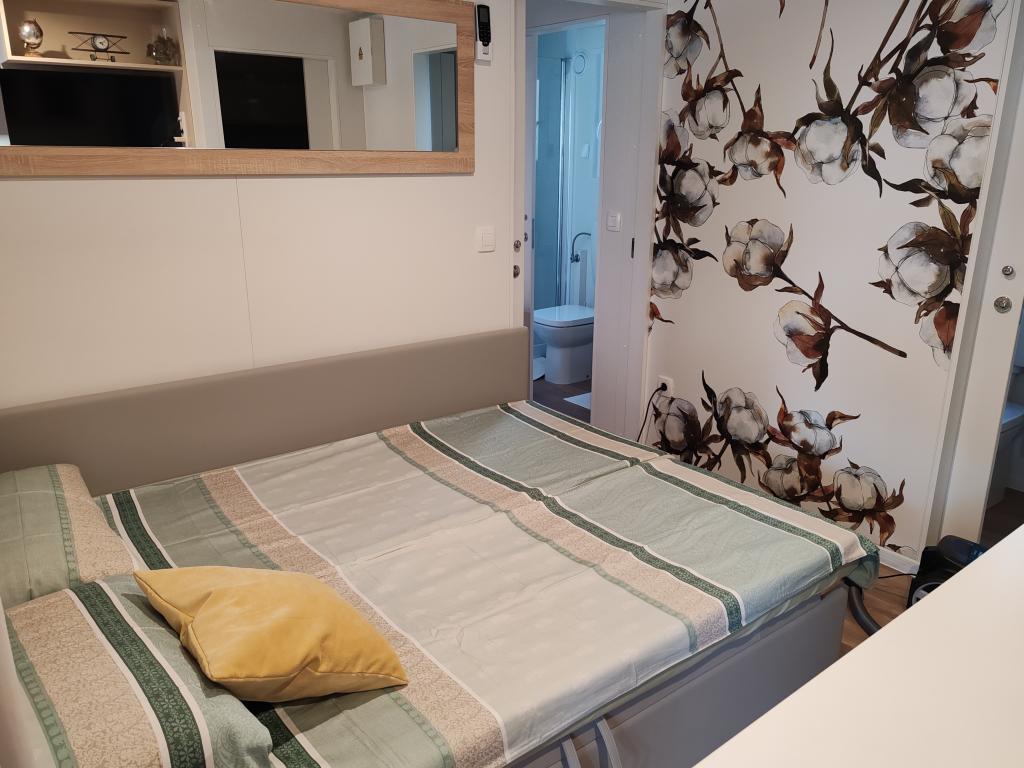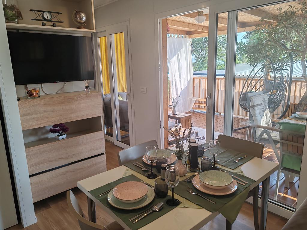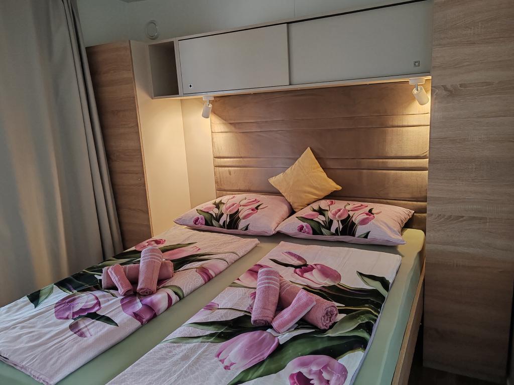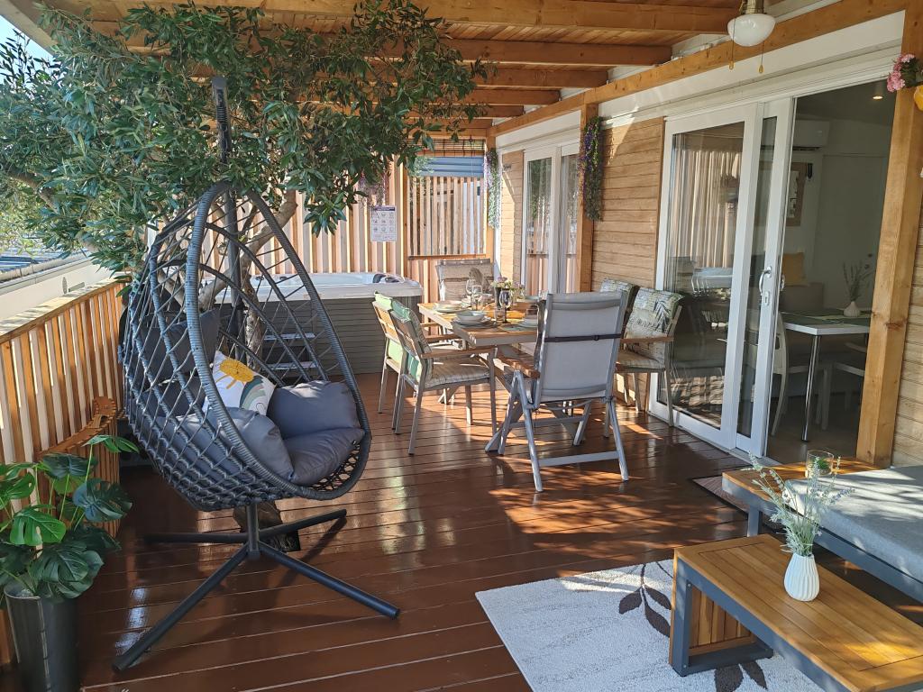 Ein voll ausgestattetes und modernes Mobilheim in bester Lage auf einem bekannten und gut ausgestatteten Campingplatz mit vielen Annehmlichkeiten, besonders für Familien mit Kindern. Das 32 m² große Haus verfügt über zwei Schlafzimmer, ein Wohnzimmer und eine voll ausgestattete Küche mit Geschirrspüler, Mikrowelle, Toaster, Dolce Gusto Kaffeemaschine und Wasserkocher. Es gibt außerdem zwei Badezimmer mit Dusche. Ein Schlafzimmer ist mit einem Doppelbett (160 × 200 cm) und einem eigenen Bad ausgestattet. Das zweite Schlafzimmer bietet zwei Einzelbetten (80 × 200 cm). Im Wohnzimmer befindet sich ein ausziehbares Schlafsofa für zwei Personen. Die 29 m² große Terrasse ist mit einem beheizten Whirlpool und Sitzgelegenheiten ausgestattet. Die Unterkunft ist komplett ausgestattet mit allem, was Sie benötigen (Bettwäsche, Handtücher, Toilettenartikel etc.). Ein Gasgrill steht Ihnen ebenfalls zur Verfügung. Ein Schwimmbadkomplex ist nur 100 m entfernt, der Strand ca. 250 m. Das Zentrum von Selc ist nur 13 Gehminuten entfernt. Kostenlose Privatparkplätze und Internet mit Smart-TV (Netflix, YouTube usw.).