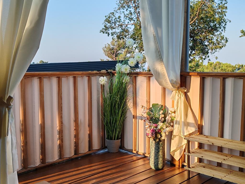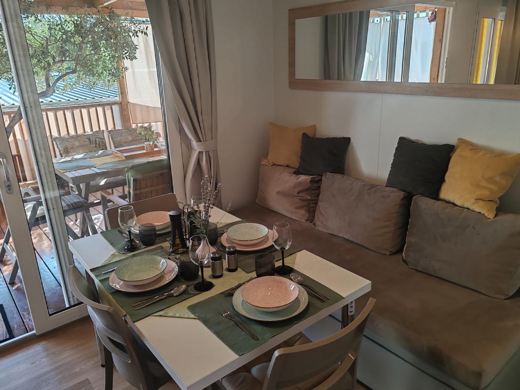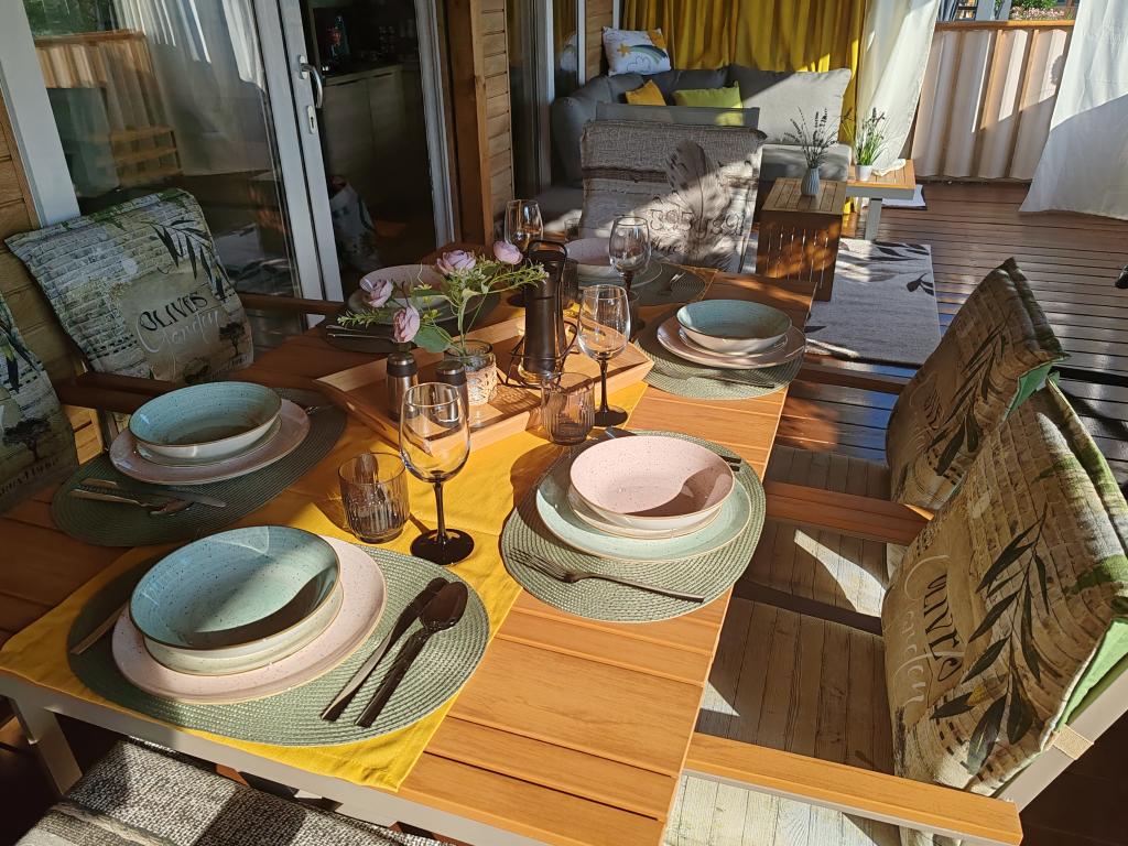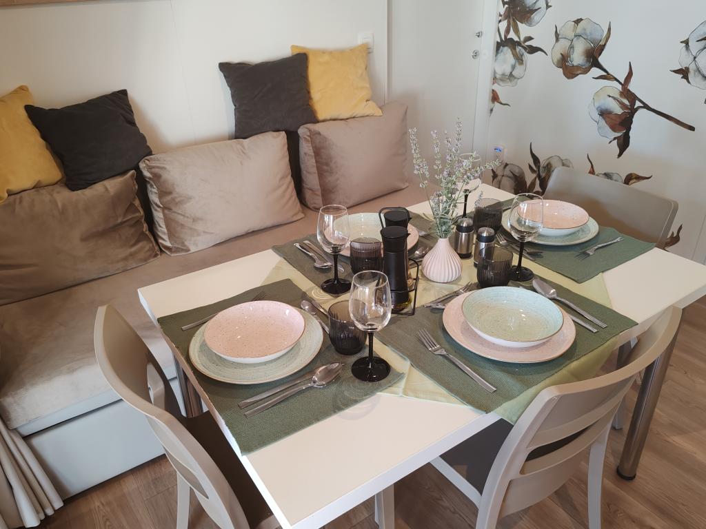 Ein wunderschönes Mobilheim, in dem Sie sich wohlfühlen werden, denn es verfügt über eine hochwertige Ausstattung, von den Betten über die Küche bis hin zur schönen Terrasse, was völlige Anonymität bietet. Auch die freundlichen Besitzer sorgten für einen netten Empfang.