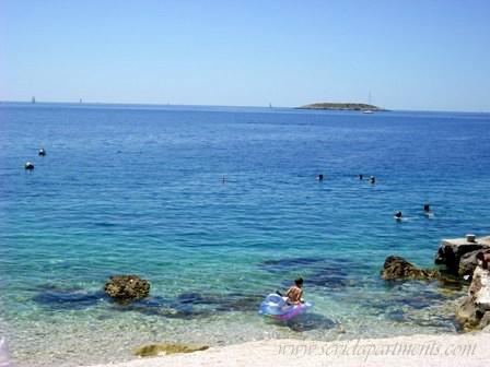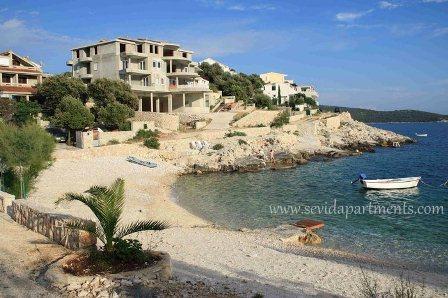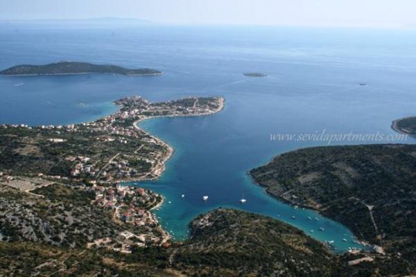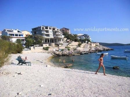 Strandhaus mit zwei Wohnungen am Meer, 10 m zum Strand Kieselsteinen. Zwei-Zimmer-Wohnung im Erdgeschoss (4 +1) und Ein-Zimmer-Wohnung (2 +2) im ersten Stock mit einem atemberaubenden Blick auf das Meer, den Strand und die Inseln. Geben Sie einen ruhigen Urlaub in sevid - Trogir Riviera, genießen die Schönheit der sonnigen Buchten und kristallklarem Wasser, das fast versteckte Teil der kroatischen Küste.