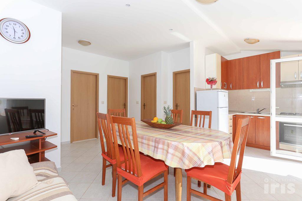 Das Haus liegt 50 m vom Meer entfernt in einem ruhigen Ort in der Nähe von Trogir, Sevid. In diesem Haus bieten wir 3 Wohnungen 4+2 an. Die Apartments verfügen über eine voll ausgestattete Küche, Sat-TV, Klimaanlage/Heizung und WLAN-Internet. Parkplätze und Anlegeplätze sind vorhanden. In der Nähe des Hauses haben Sie alles, was Sie brauchen: Strand, Restaurant, Supermarkt, Café. Apartment 1 (4+2) * * * Es handelt sich um ein Apartment im Erdgeschoss, ca. 50 m2, mit 2 Zimmern, kleinem WC, größerem WC, Küche, Wohnzimmer mit Sofa für 2 Personen, Balkon, Klimaanlage, WLAN, Parkplatz. Apartment 2 (4+2) * * * Apartment im ersten Stock, ca. 75 m2, 2 Zimmer, kleines WC, größeres WC, Küche, Wohnzimmer mit Sofa für 2, Balkon, Klimaanlage, WLAN, Sat-TV, Parkplatz. Apartment 3 (4+2) * * * Im zweiten Stock, hat es etwa 75 m2, 2 Zimmer, kleines Badezimmer, größeres Badezimmer, Küche, Wohnzimmer mit Sofa für 2, Balkon, Klimaanlage, WLAN, Sat-TV, Parkplatz.