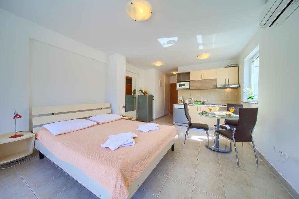 Unsere Apartments befinden sich in einem Doppelhaus und sind nicht weit vom Zentrum von Šilo entfernt (ca. 5 Gehminuten). Die Apartments sind brandneu, modern eingerichtet, mit vier Sternen kategorisiert und nur etwa hundert Meter vom Meer und einem Sandstrand entfernt, der ideal für Kinder ist. Jedes Apartment verfügt über einen gesicherten Parkplatz.