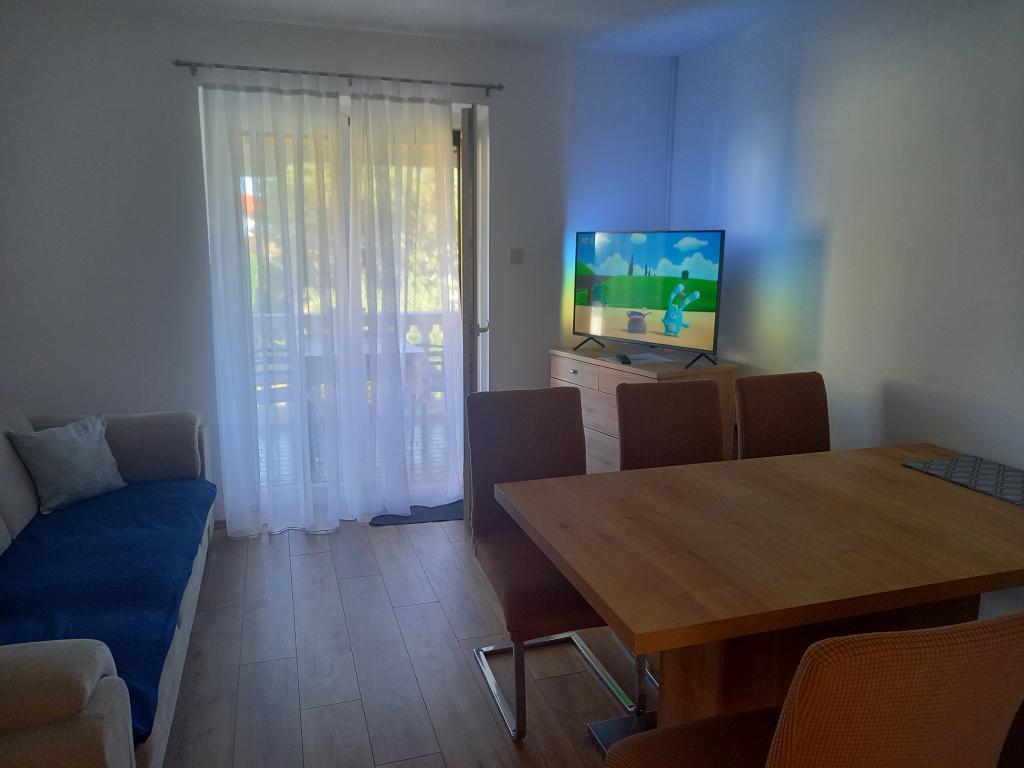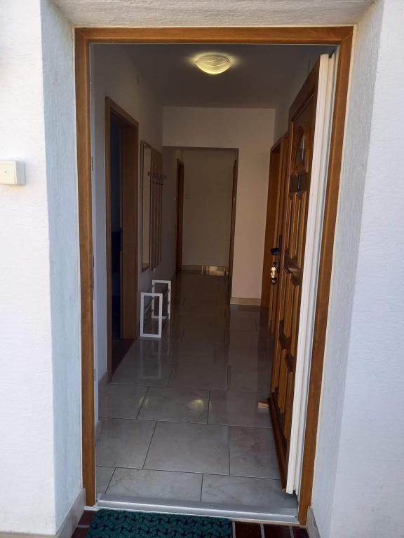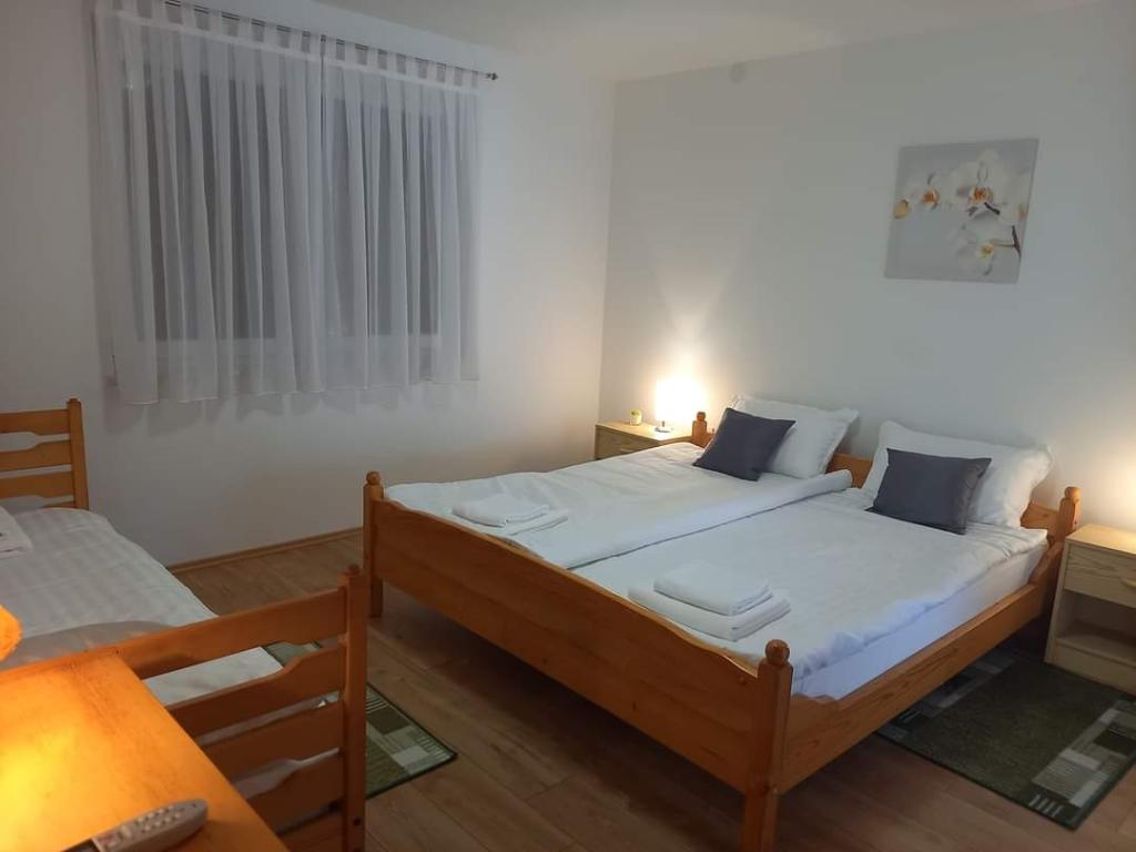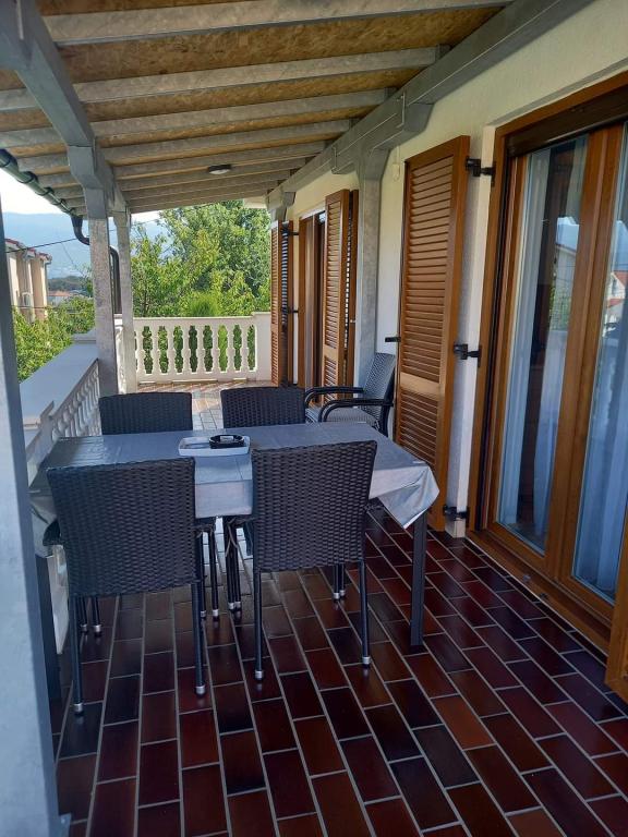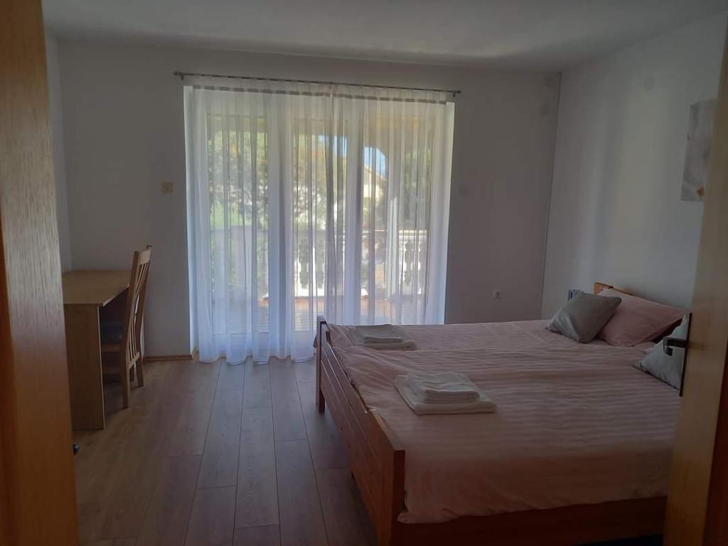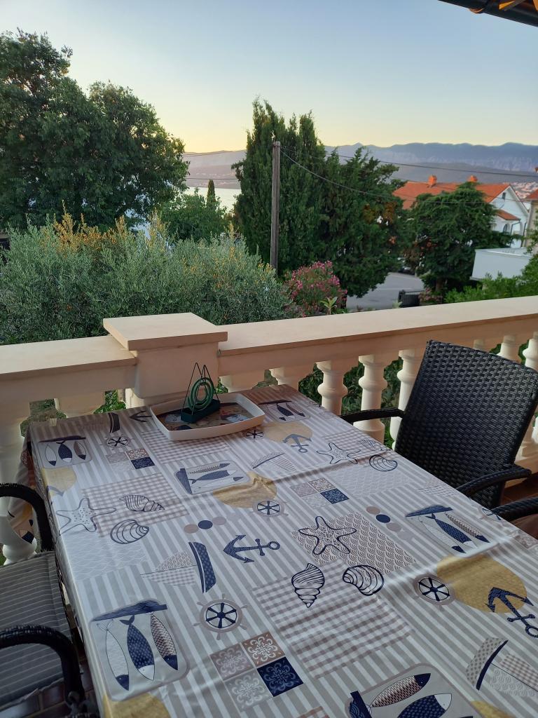 Im schönen, grünen Städtchen Šilo auf der Insel Krk vermietet man eine 80 m² große Wohnung im ersten Stock eines Familienferienhauses mit geräumiger Terrasse und Meerblick. Die Unterkunft ist für 5+1 Personen ausgelegt und besteht aus einem Dreibettzimmer, einem Doppelzimmer und einem Zustellbett. Der nächste Strand ist 200 m, der Sandstrand 300 m und das Stadtzentrum 200 m entfernt. Parkplätze stehen im umzäunten Hof zur Verfügung.