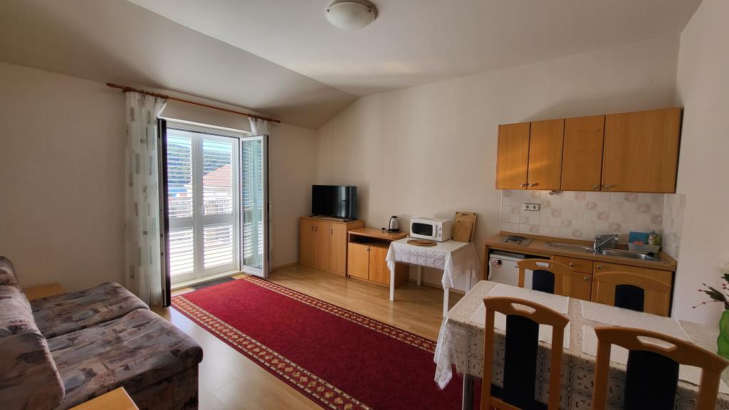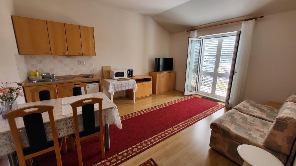 Jede Empfehlung zur Unterkunft, die Wohnung sah besser aus als auf den Fotos, alles war sauber und ordentlich, das tolle ist, dass sie einen eigenen Balkon mit schöner Aussicht hat und man morgens, nachmittags und abends gemütlich verweilen kann. Die Strände sind weniger als 3 Gehminuten entfernt, oder 5 Gehminuten, wenn Sie einen Strand mit Café / Restaurant wünschen. Der Gastgeber Miho war freundlich und immer verfügbar, wenn etwas benötigt wurde, und dennoch hatten wir Ruhe und Privatsphäre.