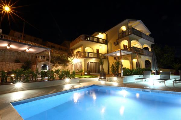 Das Haus ist 90 Meter vom Meer entfernt, in einer ruhigen Gegend von Slatina. Es gibt einen Swimmingpool, einen Grillplatz für alle Gäste, kostenfreien Internetzugang und Parkplätze. Jede Wohnung verfügt über Meerblick und zwei Terrassen, auf denen Sie sich entspannen und genießen Sie Ihren Urlaub. Alle Wohnungen sind klimatisiert und gut ausgestattet.