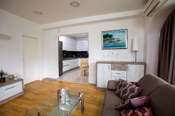 Kurtaxe ist im Preis inbegriffen.Die Wohnung und das Gebäude sind modern, hochwertig, gepflegt und vor allem sauber. Die Wohnung ist sehr komfortabel und geräumig, ideal für die Familie. Der Blick vom Balkon zum Meer ist fantastisch. Der Pool im angelegten Garten ist sehr sauber und lädt zum Entspannen ein. Der Besitzer ist unglaublich hilfsbereit, wir können ihm nicht genug für einen so angenehmen Aufenthalt danken. Tolle Lage, um die mitteldalmatinische Küste zu erkunden.