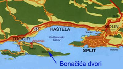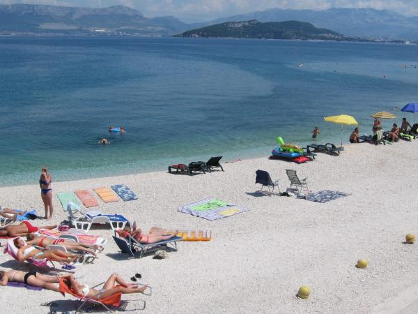 Bonacic Gerichte haben den Besitz an der Küste, eingezäunt, um die Intimität der Bevölkerung mit zu bewahren. Unser Angebot umfasst drei voll ausgestattete Appartements und ein Studio-Apartment. Die Apartments sind luxuriös eingerichtet und dekoriert mit stilom.Ispred Haus ist eine Wiese mit Blumen und einem großen Baum, Granatäpfel (Granatapfel) und Abb. Darüber hinaus gibt es ein Landhaus aus Stein mit Kamin (Grill) und einer Küche, wo die Gäste kochen und vor Häusern, wo es Tische und Stühle zu essen. Das Ferienhaus ist ein großes Getränke-Kühler zur Kühlung und Einfrieren von Lebensmitteln. Große Terrasse hoch über dem Meer. In ihm können Sie entspannen und sich sonnen und zu essen. Der Blick von ihr verzaubert, wie es nach Split und Kastela Berg Mosor und Marjan will.