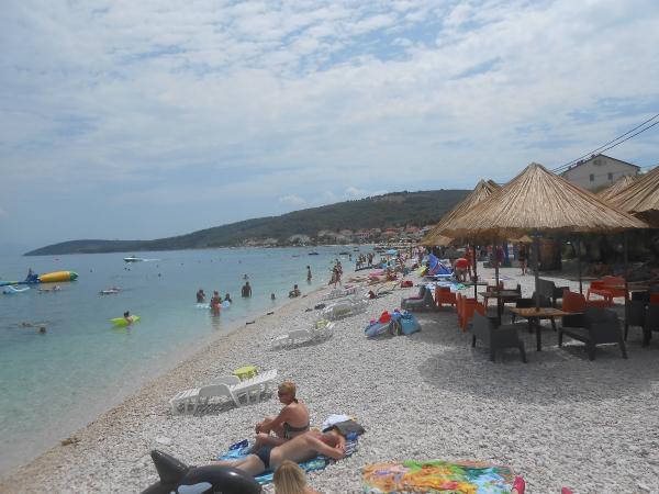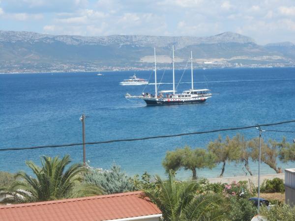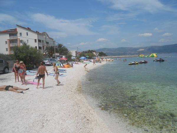 Wir haben uns bei Frau Ivanka sehr wohl gefühlt, die Wohnung war sauber, gut eingerichtet, alle Fenster hatten Fliegengitter. Die Gastgeberin ist eine sehr nette Dame, sie hat uns mit allem versorgt, was wir brauchten. Das Haus liegt sehr nah am Strand und gleichzeitig unter dem Wald, so dass die meiste Zeit keine Klimaanlage nötig war, es herrschte eine angenehme Luft aus den Bergen (und wir wohnten im Dachgeschoss). Der Strand ist sauber, kiesig und unbewohnt. Nähe und gute Erreichbarkeit zweier wunderschöner historischer Städte – Trogir und Split (mit dem Auto, öffentlichen Verkehrsmitteln, Boot). Ein Ticket für das Boot Slatine - Split kostet 5,50 Euro