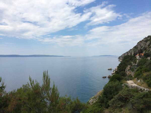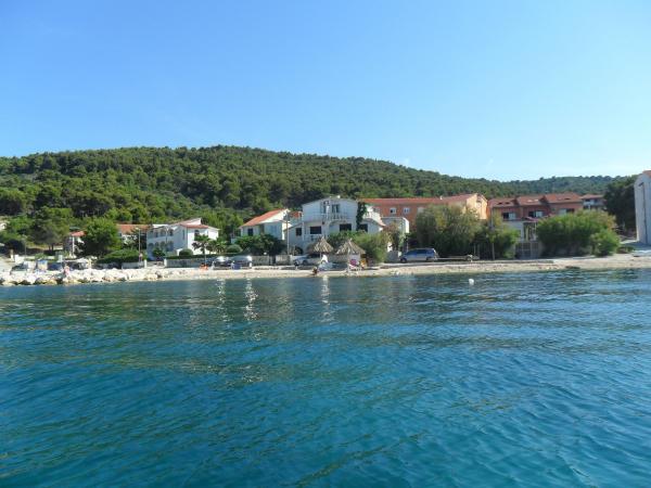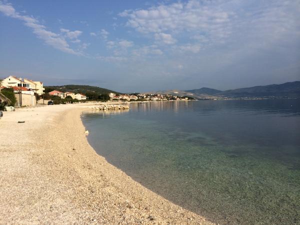 Die Apartments liegen sehr nah am Strand und bieten einen wunderschönen Blick auf das Meer. Sehr sauber, mit allen notwendigen Dingen ausgestattet. Die Besitzerin ist sehr nett, hilfsbereit und kümmert sich um ihre Gäste. Ein gepflegter Strand mit feinen Kieselsteinen und einer Außendusche. Platzieren Sie in einer ruhigen Gegend. Es liegt jedoch in der Nähe von Bars, Restaurants und einem Wasserspielplatz. In der Nähe von Ausflügen nach Trogir und Split. Sie können mit öffentlichen Verkehrsmitteln und der Fähre dorthin gelangen.