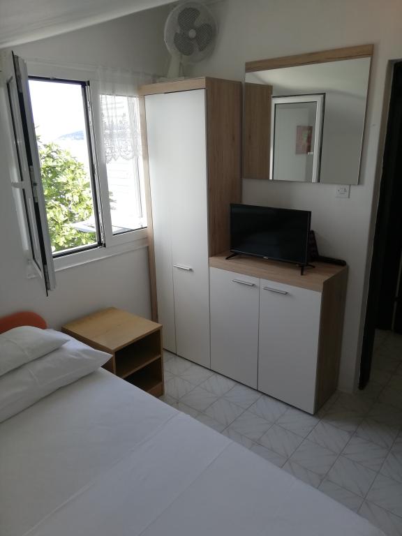Ciovo ist eine Insel durch eine Brücke mit der Stadt Trogir verbunden ist. Es ist eine grüne von kristallklarem Wasser umgeben Insel, wo die langen Rad- und Wanderwege. Stadt Slatina ist 9 km von Trogir entfernt. Slatina ist mit Trogir und Split mit Bus und Schiff verbunden. Das Haus liegt direkt am Meer mit Blick auf Split und 7 Burg und natürlich mit Meerblick aus allen Zimmern. Vor dem Haus ist ein Parkplatz und Kiesstrand, und in unserem Hinterhof Dusche. Unsere Apartments mit voll ausgestatteter Küche, Klimaanlage, Sat-TV und Wi-Fi. Apartment A4-2. Stock Studio-Apartment mit einem extra Raum und Terrasse. Apartment A2-1. Wohnung mit eigener Küche, Bad und Balkon. A4 × 1-1. Stock sind zwei kleine Zimmer mit einem Esszimmer, mit Küche, Bad und einem kleinen Balkon. A2 und A4 × 1 haben einen gemeinsamen Eingang und Flur. Ferienwohnung A6 umfasst A2 und A4 × 1 und die gesamte erste Etage. Das Erdgeschoss Studio-Apartment A5 × 1 mit einem speziellen Raum. Willkommen in unseren Wohnungen und wir freuen uns auf Sie!