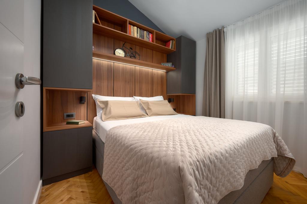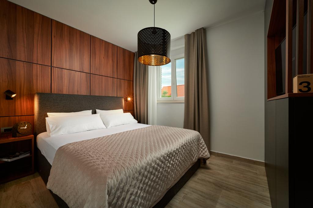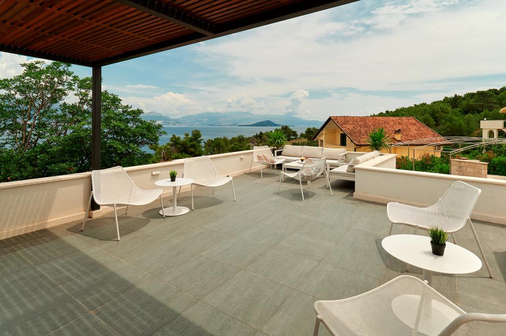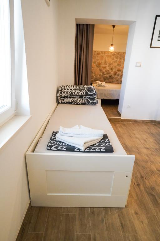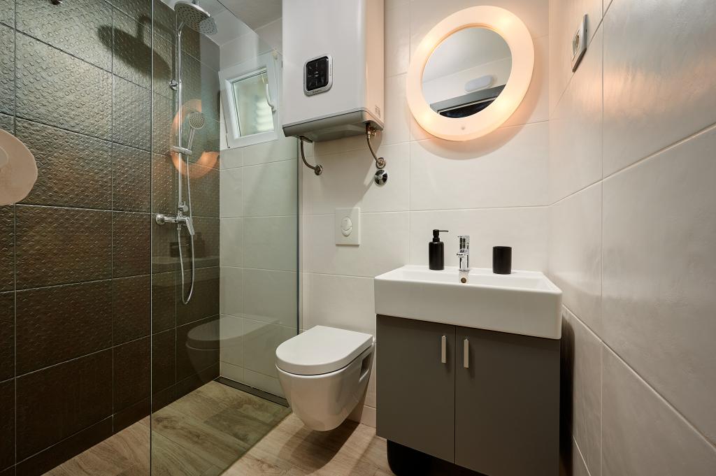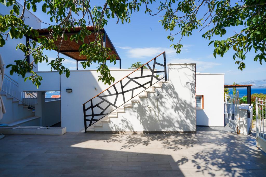 Willkommen in unseren wunderschönen Apartments Quinn Tiger, Rustica und Sky, die in einem ruhigen Teil von Slatina auf der Insel Čiovo liegen. Sie sind ein ideales Ziel für einen erholsamen Urlaub am Meer und in der Nähe kultureller und historischer Sehenswürdigkeiten. Quinn Tiger fällt durch sein anspruchsvolles Design und seine luxuriösen Details auf. Der geräumige Innenraum und die Kombination aus warmen und kräftigen Tönen machen es zur idealen Wahl für alle, die etwas Besonderes wollen. Es teilt sich mit dem Apartment Rustica eine große Gemeinschaftsterrasse, die sich perfekt für einen Morgenkaffee oder geselliges Beisammensein am Abend eignet. Rustica bietet eine Mischung aus modernem und traditionellem Stil mit Holzdetails, die eine gemütliche, heimelige Atmosphäre schaffen. Sky strahlt Eleganz und zeitgenössisches Design aus. Helle Töne und ein luftiger Raum sorgen für die perfekte Atmosphäre zum Entspannen. Zusätzlich zur Gemeinschaftsterrasse bietet es auch eine eigene separate Terrasse für absolute Privatsphäre. Alle Apartments befinden sich in einem privaten Haus, sodass Ruhe und Frieden gewährleistet sind und der Strand sowie Geschäfte, Restaurants und Strandbars nur 100 m entfernt liegen. Die historische Stadt Trogir steht unter dem Schutz der UNESCO.
