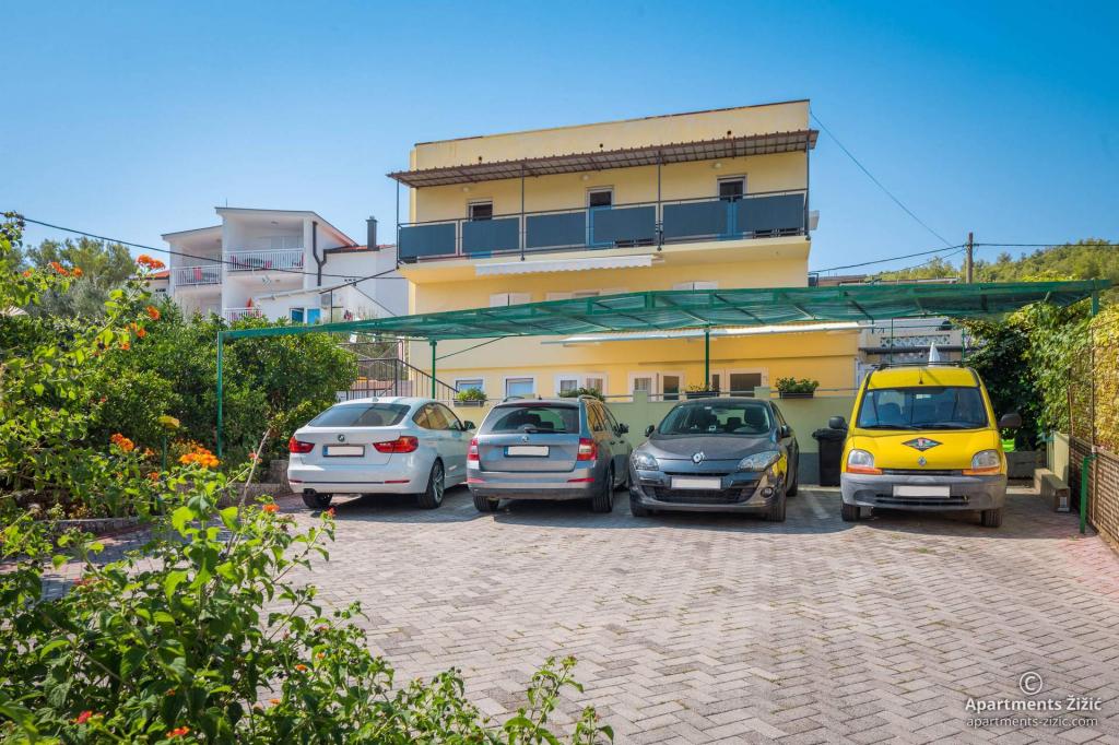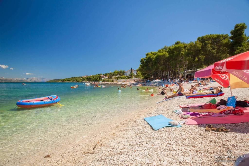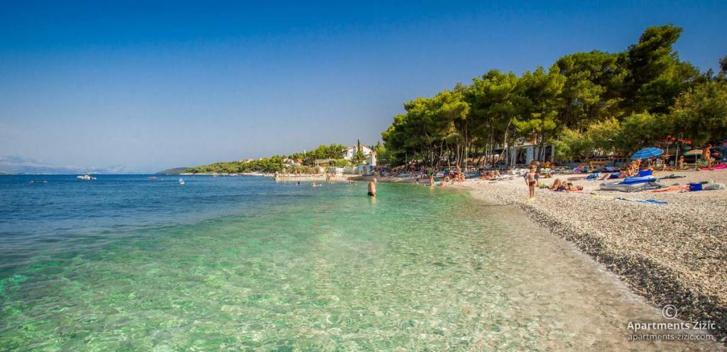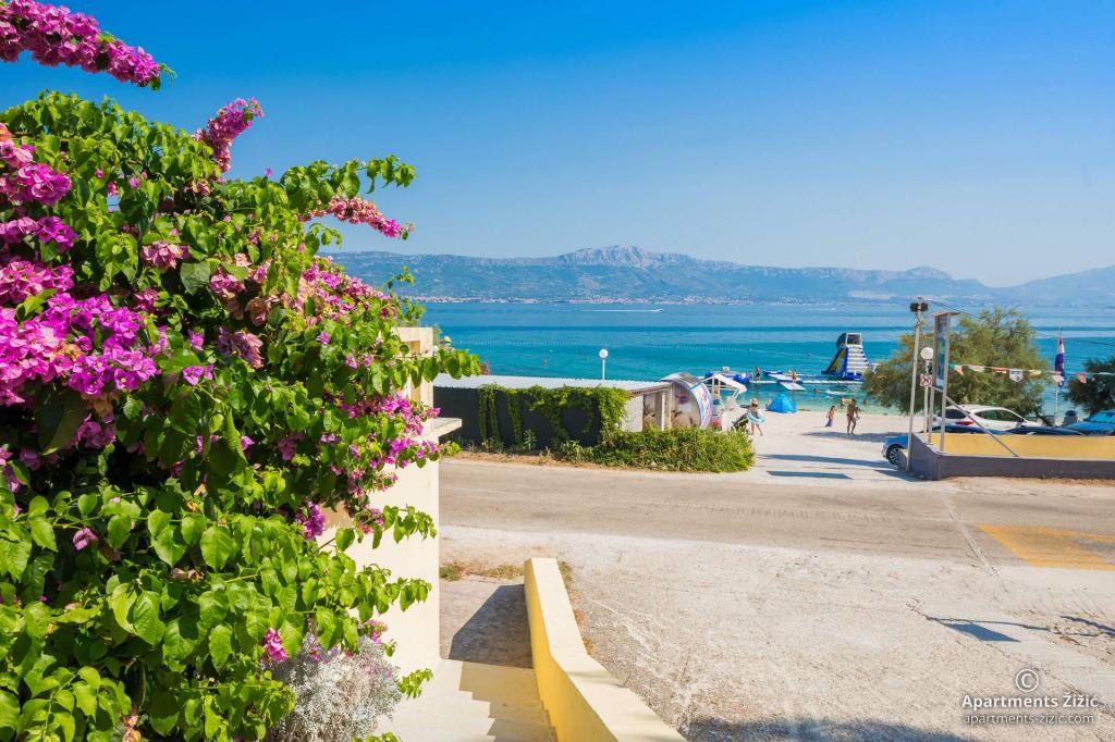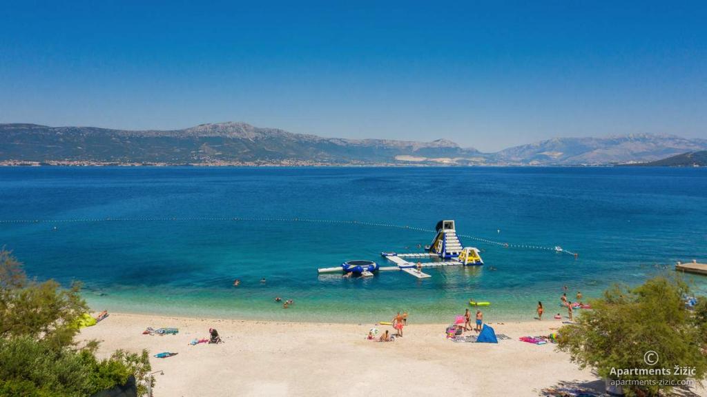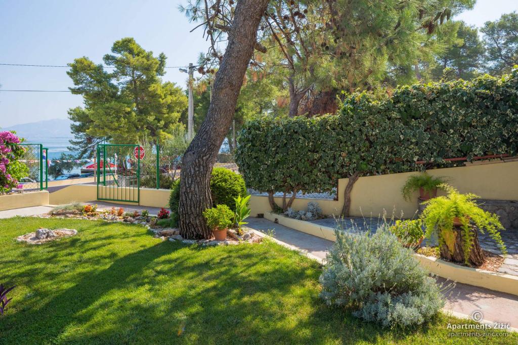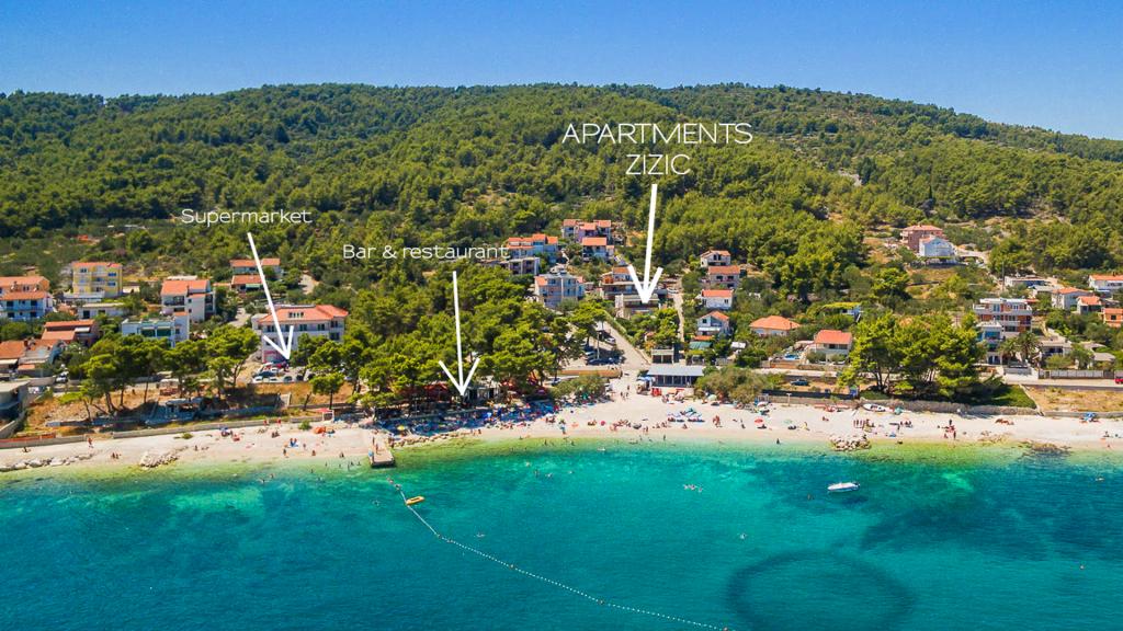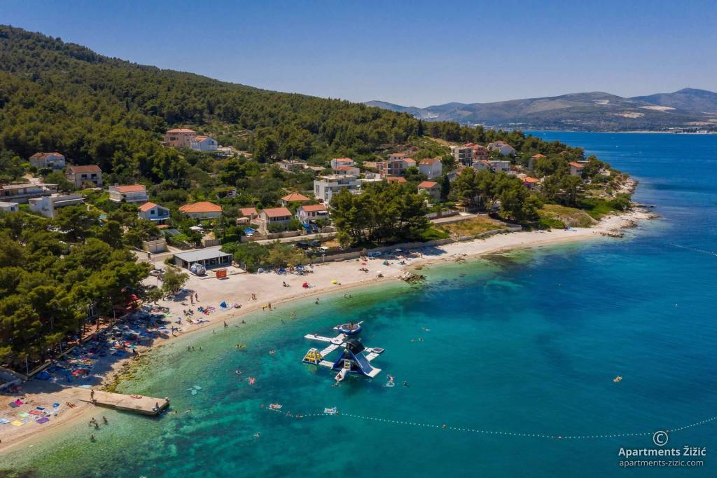 Die Zizic Apartments befinden sich auf der Insel Ciovo in Kroatien, 1 km von Slatine und 7 km von Trogir entfernt. Unsere Apartments sind die ideale Wahl für einen ruhigen und erholsamen Urlaub inmitten der Natur und mediterraner Pflanzen, nur 20 Meter vom schönen Strand entfernt. Jede Wohnung verfügt über eine Terrasse, separate Zimmer, Küche mit Geräten, Wohnzimmer und Bad. Auch für die Wohnungen A4 und A5 ist ein Stellplatz in überdachter und geschlossener Tiefgarage (vor dem Haus) vorgesehen, und für die Wohnung A6 2 Stellplätze. Am Strand vor dem Haus befindet sich eine gastronomische Einrichtung mit einem Café und einem Restaurant, wo Sie Sonnenschirme und Liegestühle mieten und Duschen nutzen können. Nur 80 m vom Haus entfernt finden Sie einen Supermarkt und einen Geldautomaten.