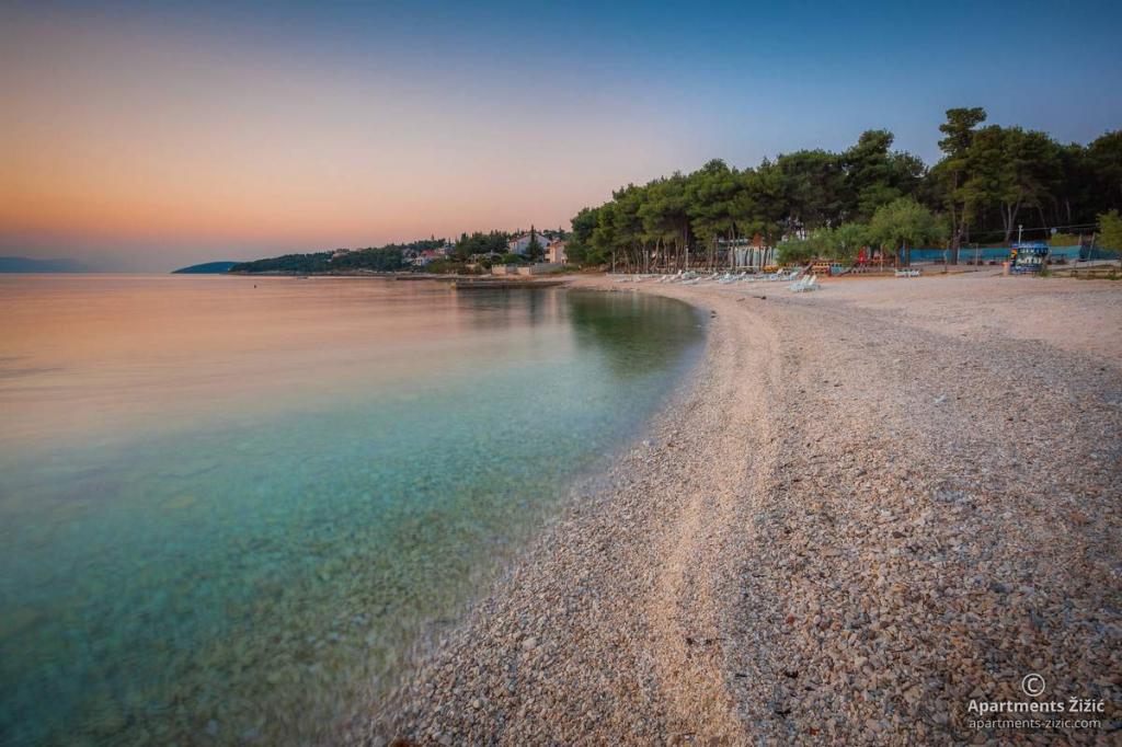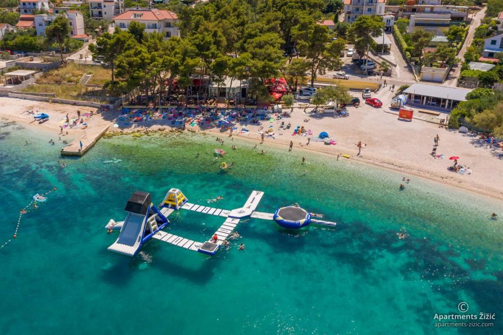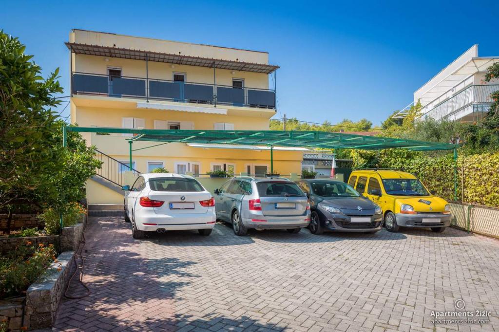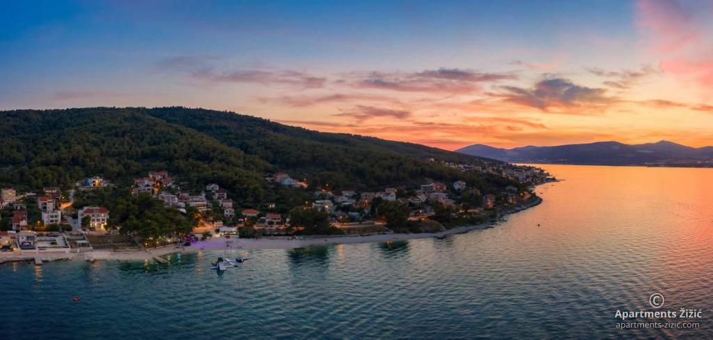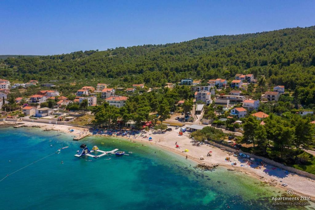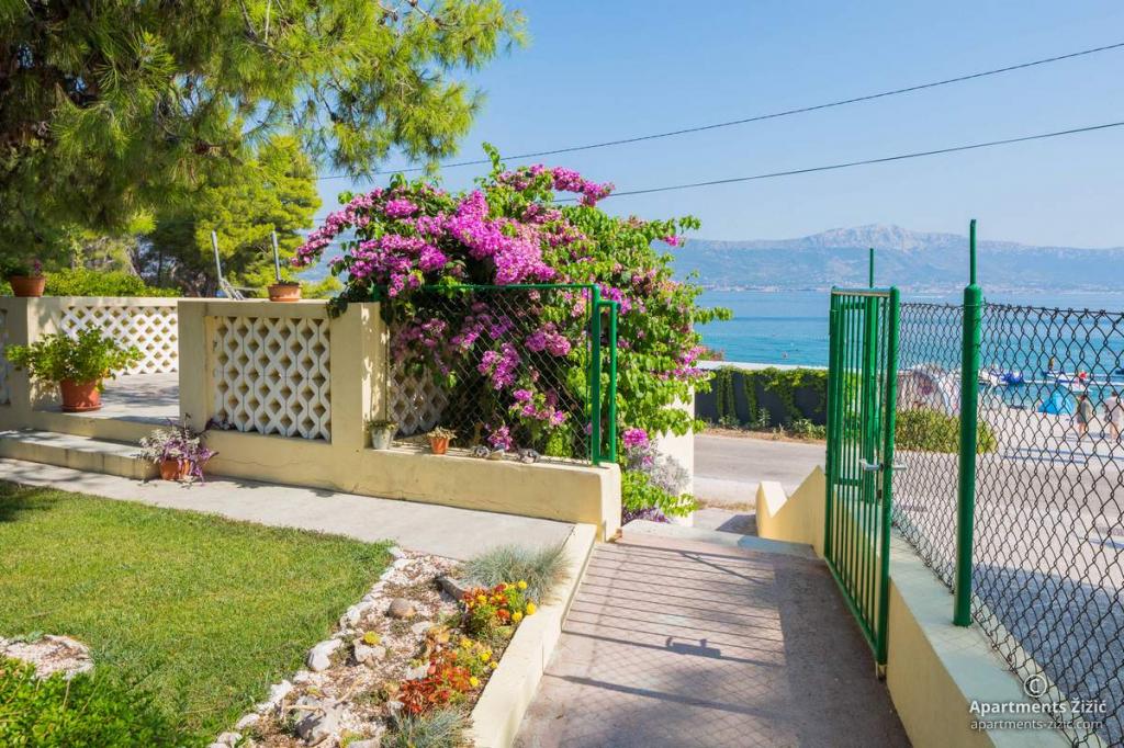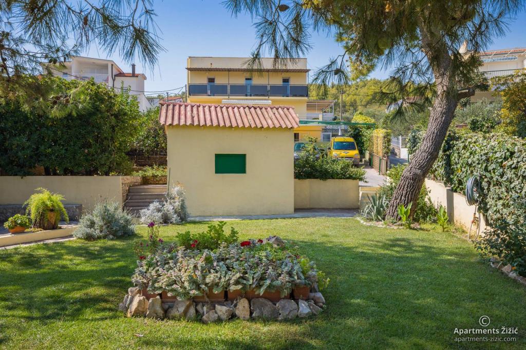 Die Zizic Apartments befinden sich auf der Insel Ciovo in Kroatien, 1 km von Slatine und 7 km von Trogir entfernt. Unsere Apartments sind die ideale Wahl für einen ruhigen und erholsamen Urlaub inmitten der Natur und mediterraner Pflanzen, nur 20 Meter vom schönen Strand entfernt. Jede Wohnung verfügt über eine Terrasse, separate Zimmer, Küche mit Geräten, Wohnzimmer und Bad. Auch für die Wohnungen A4 und A5 ist ein Stellplatz in überdachter und geschlossener Tiefgarage (vor dem Haus) vorgesehen, und für die Wohnung A6 2 Stellplätze. Am Strand vor dem Haus befindet sich eine gastronomische Einrichtung mit einem Café und einem Restaurant, wo Sie Sonnenschirme und Liegestühle mieten und Duschen nutzen können. Nur 80 m vom Haus entfernt finden Sie einen Supermarkt und einen Geldautomaten.