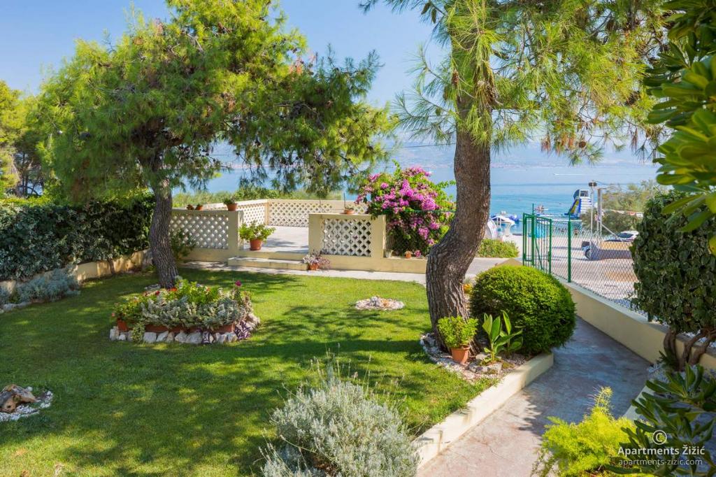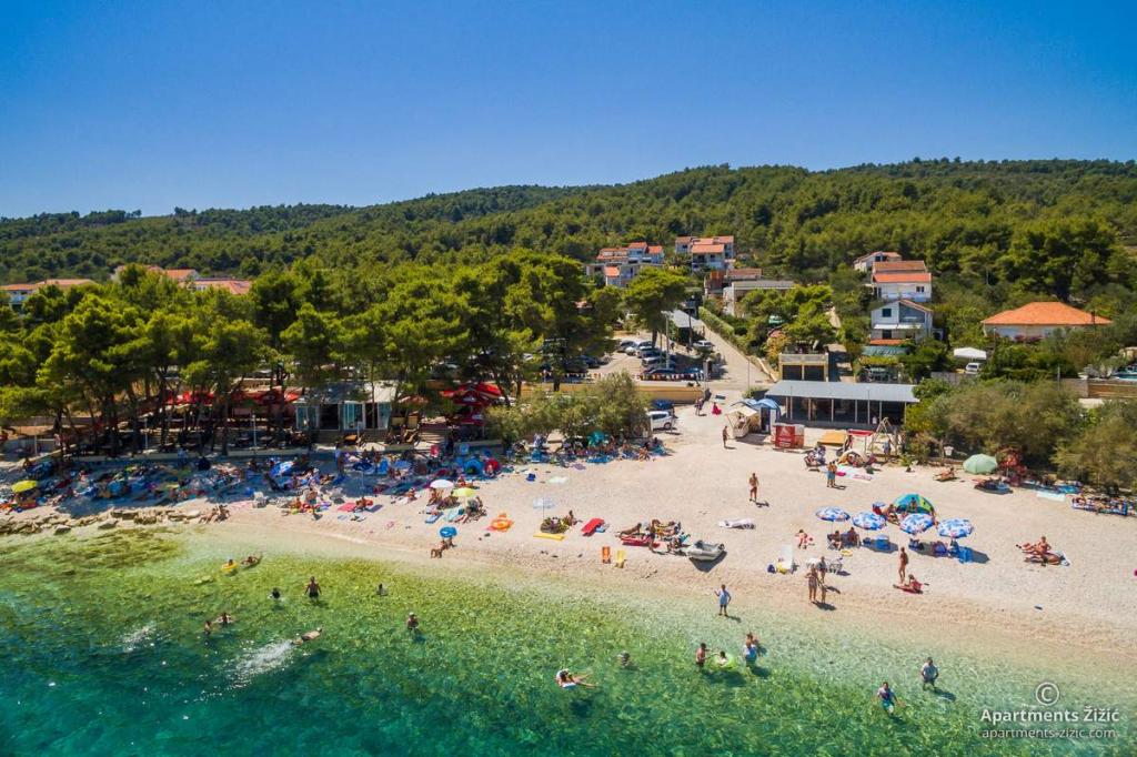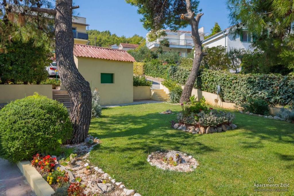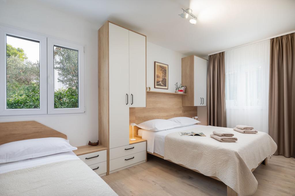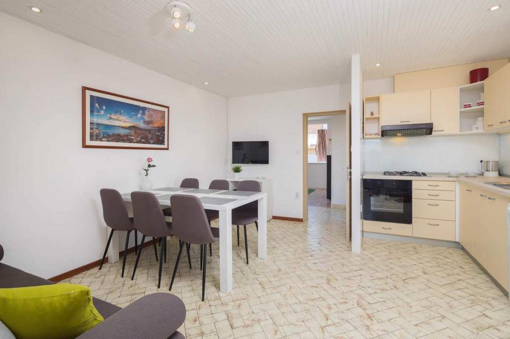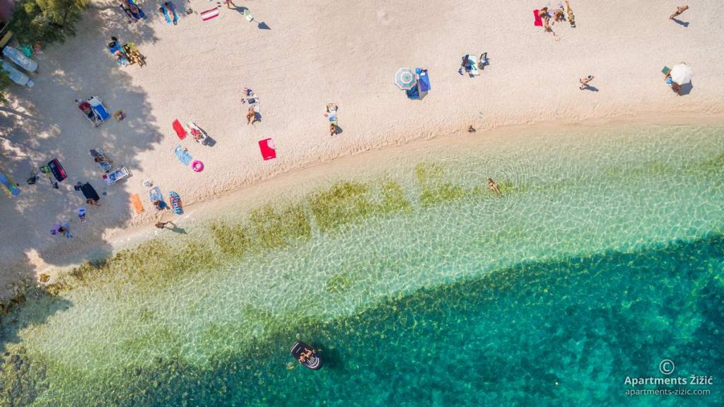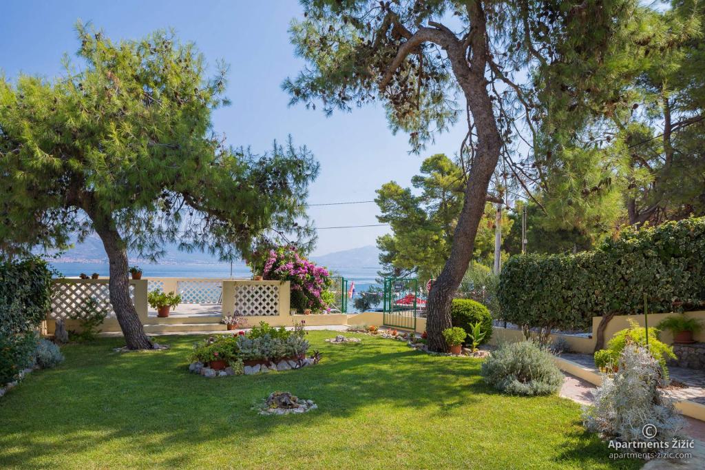 Die Zizic Apartments befinden sich auf der Insel Ciovo in Kroatien, 1 km von Slatine und 7 km von Trogir entfernt. Unsere Apartments sind die ideale Wahl für einen ruhigen und erholsamen Urlaub inmitten der Natur und mediterraner Pflanzen, nur 20 Meter vom schönen Strand entfernt. Jede Wohnung verfügt über eine Terrasse, separate Zimmer, Küche mit Geräten, Wohnzimmer und Bad. Auch für die Wohnungen A4 und A5 ist ein Stellplatz in überdachter und geschlossener Tiefgarage (vor dem Haus) vorgesehen, und für die Wohnung A6 2 Stellplätze. Am Strand vor dem Haus befindet sich eine gastronomische Einrichtung mit einem Café und einem Restaurant, wo Sie Sonnenschirme und Liegestühle mieten und Duschen nutzen können. Nur 80 m vom Haus entfernt finden Sie einen Supermarkt und einen Geldautomaten.