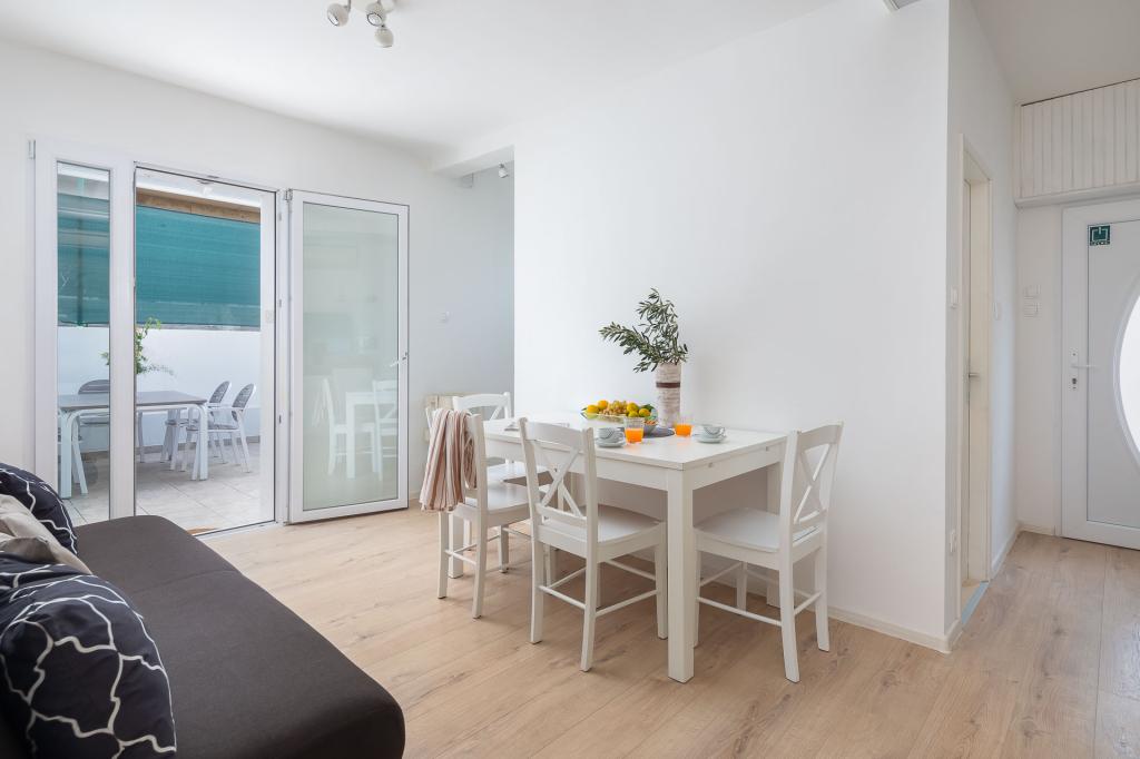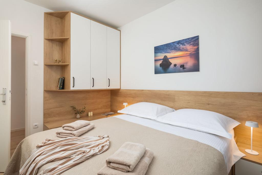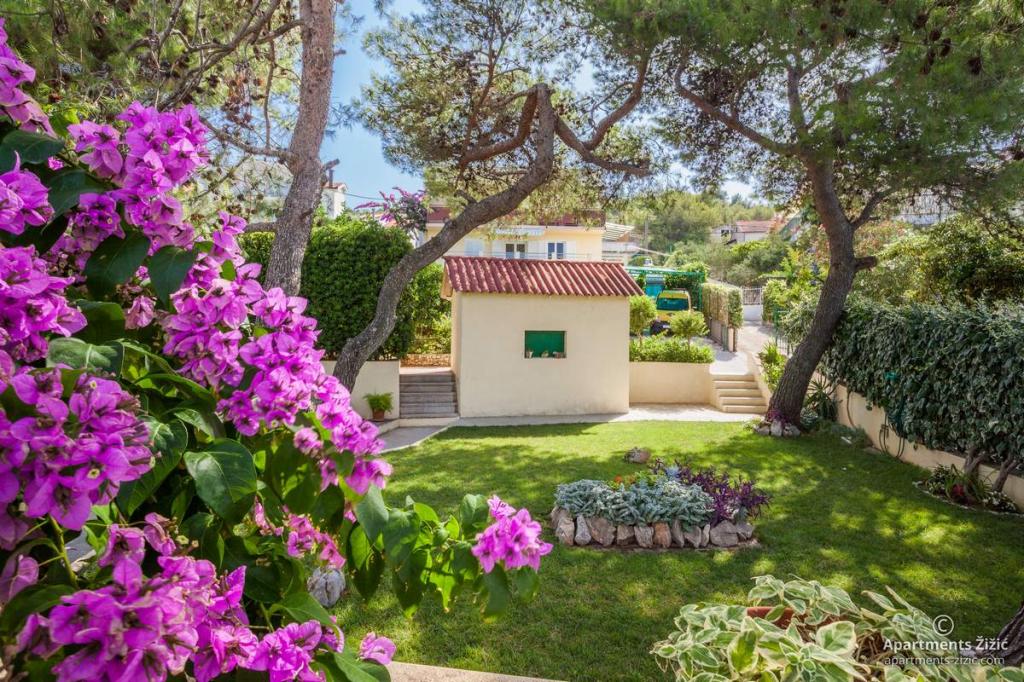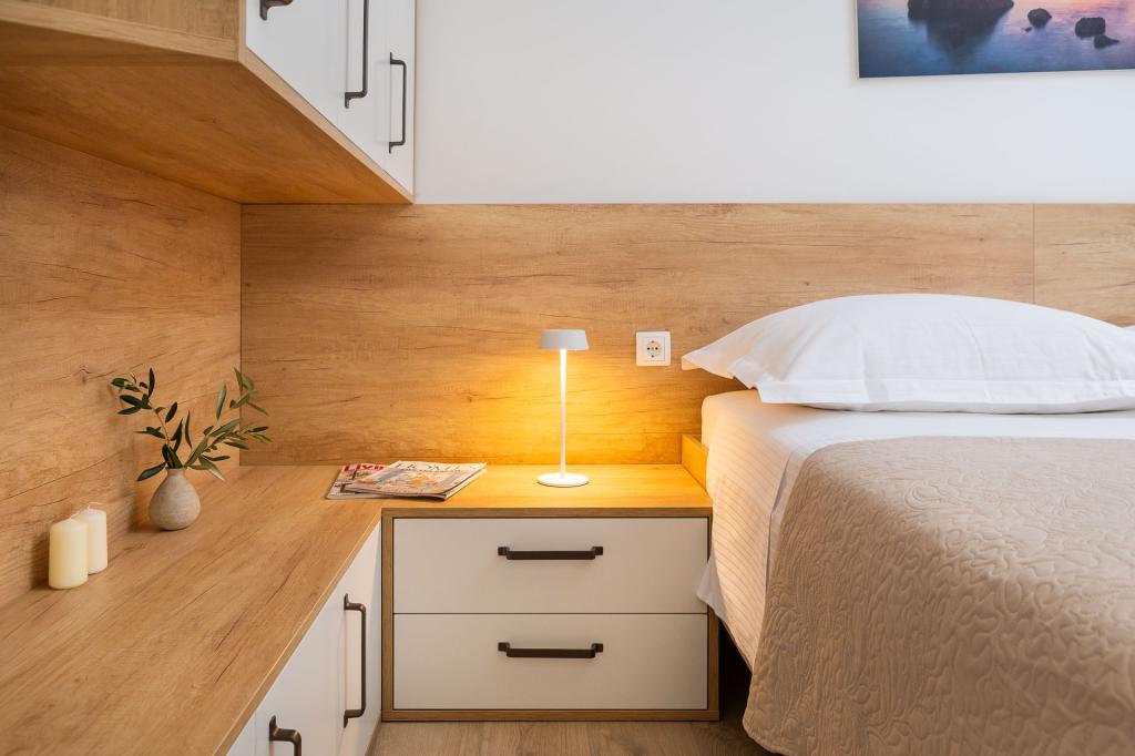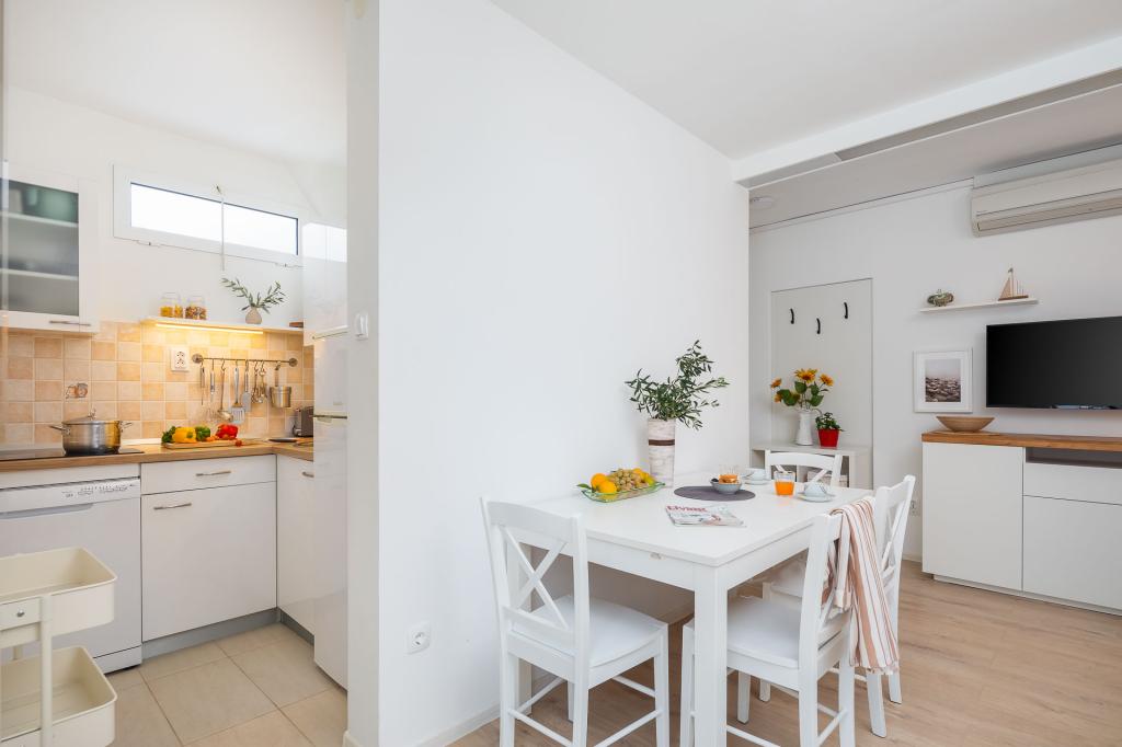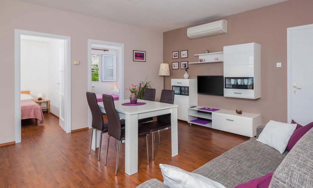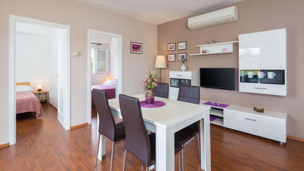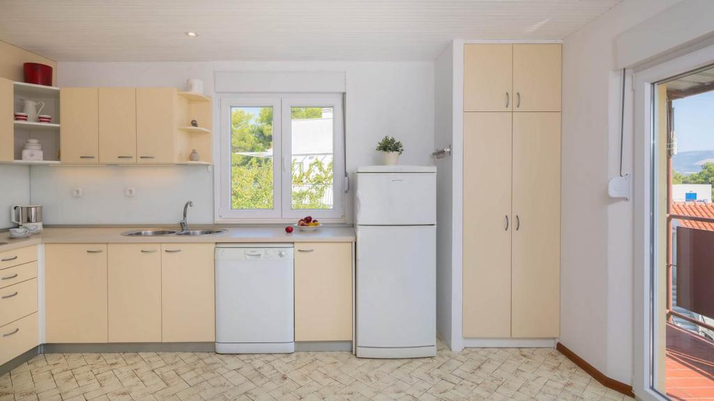 Die Zizic Apartments befinden sich auf der Insel Ciovo in Kroatien, 1 km von Slatine und 7 km von Trogir entfernt. Unsere Apartments sind die ideale Wahl für einen ruhigen und erholsamen Urlaub inmitten der Natur und mediterraner Pflanzen, nur 20 Meter vom schönen Strand entfernt. Jede Wohnung verfügt über eine Terrasse, separate Zimmer, Küche mit Geräten, Wohnzimmer und Bad. Auch für die Wohnungen A4 und A5 ist ein Stellplatz in überdachter und geschlossener Tiefgarage (vor dem Haus) vorgesehen, und für die Wohnung A6 2 Stellplätze. Am Strand vor dem Haus befindet sich eine gastronomische Einrichtung mit einem Café und einem Restaurant, wo Sie Sonnenschirme und Liegestühle mieten und Duschen nutzen können. Nur 80 m vom Haus entfernt finden Sie einen Supermarkt und einen Geldautomaten.