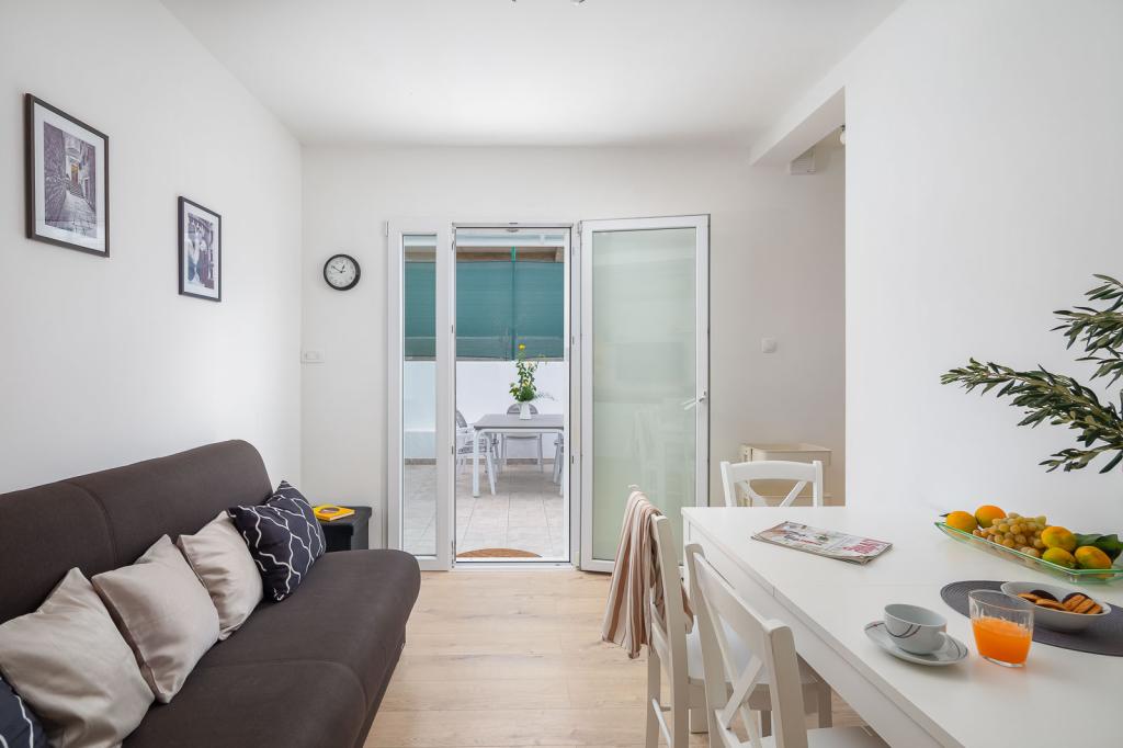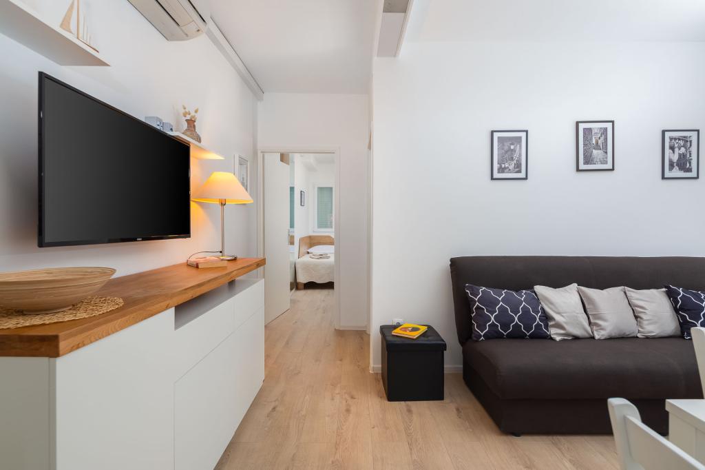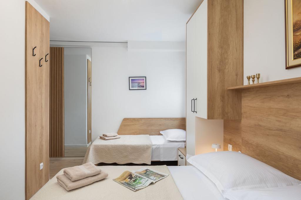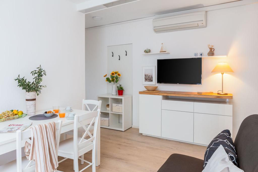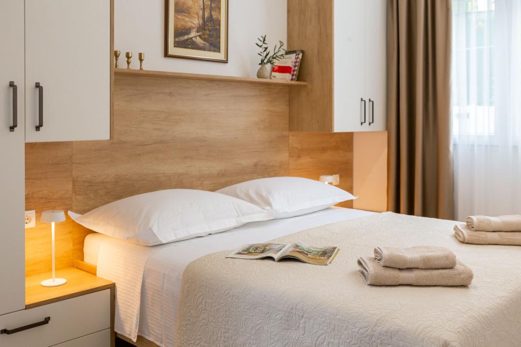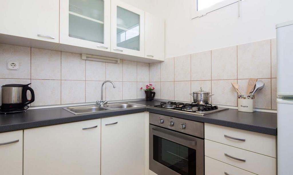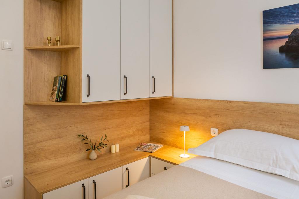 Die Zizic Apartments befinden sich auf der Insel Ciovo in Kroatien, 1 km von Slatine und 7 km von Trogir entfernt. Unsere Apartments sind die ideale Wahl für einen ruhigen und erholsamen Urlaub inmitten der Natur und mediterraner Pflanzen, nur 20 Meter vom schönen Strand entfernt. Jede Wohnung verfügt über eine Terrasse, separate Zimmer, Küche mit Geräten, Wohnzimmer und Bad. Auch für die Wohnungen A4 und A5 ist ein Stellplatz in überdachter und geschlossener Tiefgarage (vor dem Haus) vorgesehen, und für die Wohnung A6 2 Stellplätze. Am Strand vor dem Haus befindet sich eine gastronomische Einrichtung mit einem Café und einem Restaurant, wo Sie Sonnenschirme und Liegestühle mieten und Duschen nutzen können. Nur 80 m vom Haus entfernt finden Sie einen Supermarkt und einen Geldautomaten.