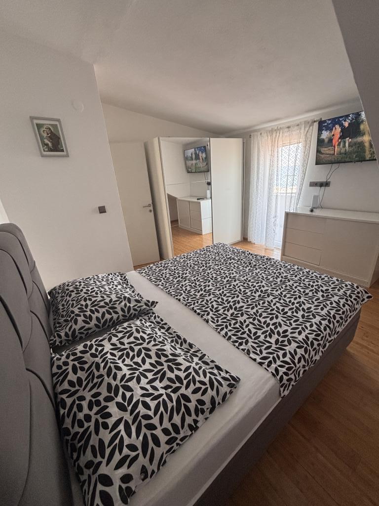 Appartement Dida in einem ruhigen Ort Slatine. Das Hotel liegt in der ersten Reihe zum Meer im Zentrum der Stadt. Im Umkreis von 100 Metern befinden sich alle notwendigen Einrichtungen für einen angenehmen Urlaub (Restaurants, Bars, Markt, Strand). Die Wohnung ist mit allen Annehmlichkeiten ausgestattet (Küche, WLAN, Spülmaschine, Waschmaschine, Waschmaschine, Mikrowelle, Wasserkocher). Die Wohnung hat einen schönen Blick auf das Meer und die Stadt Split. Neben der Wohnung befindet sich die Schiffslinie, die die Verbindungen Trogir-Slatina-Split führt. Kostenlose Parkplätze stehen zur Verfügung