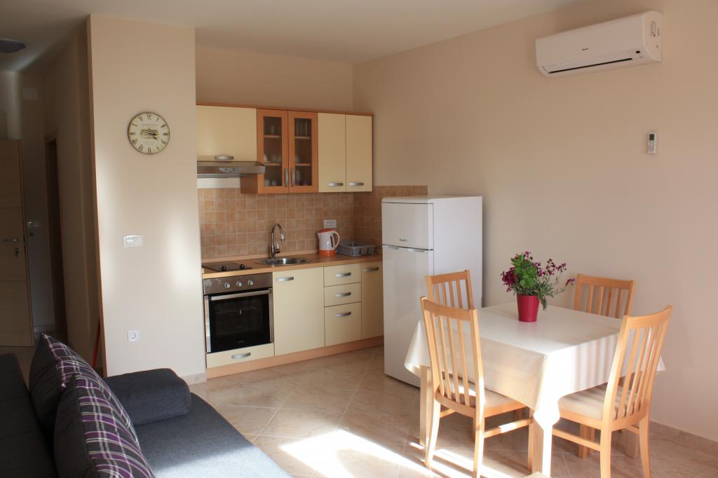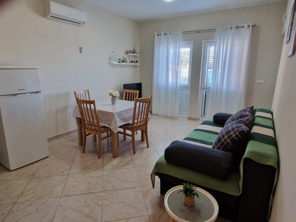 Die Wohnung (die rechte im Erdgeschoss) war groß genug für eine vierköpfige Familie. Wir wurden von einer gründlich gereinigten, eingerichteten und ordentlichen Wohnung begrüßt. Wir mussten lediglich das Schlafsofa für die Kinder selbst vorbereiten. Der Gastgeber ist äußerst höflich und zuvorkommend und hat uns mehrmals darauf hingewiesen, dass wir uns bei Bedarf an ihn wenden sollten. Jeden Tag sprach er ein paar Worte mit uns, stets mit aufrichtigem Interesse. Er räumte auch täglich die Umgebung des Hauses auf, die wirklich makellos aussieht – eine wahre Wohltat für die Augen. Er hatte Verständnis für meine Morgengymnastik auf der Veranda. Was die Ausstattung betrifft, so bietet die Küche alles, was man zum Kochen braucht, nur die Pfanne war für Pfannkuchen etwas ungeeignet, aber wir haben es geschafft. Etwa 200 Meter vom Haus entfernt gibt es einen kleinen Laden mit nicht viel Auswahl, aber es ist sehr praktisch, dass es im Dorf überhaupt einen Laden gibt. Wenn man donnerstags oder dienstags pünktlich kommt, findet man dort, glaube ich, frisch gereiftes Obst und Gemüse. Es gibt auch einige Backwaren, die wirklich sehr lecker sind. Der Verkäufer ist ein lustiger Einheimischer, es herrscht eine angenehme Atmosphäre sowohl im Laden als auch in der Umgebung, weil sich die Einheimischen nachmittags treffen und gemeinsam mit Jagdgeschichten Spaß haben. Das örtliche Café 100 m vom Haus entfernt ist auch interessant und nett, obwohl die Preise so sind, als wäre ich an der Uferpromenade von Split. Nach Sakarun sind es 20 Minuten zu Fuß, was selbst für die Kinder kein Problem war. Sakarun ist wunderschön, obwohl die Posidonia-Betten nicht mehr gereinigt werden, aber sobald man durch das Gras auf den sauberen Sand tritt, ist die Farbe des Meeres wirklich atemberaubend. Der schönste Strand auf Dugi war Veli Žal, und wenn Sie ihn genießen möchten, empfehle ich Ihnen dringend, um 7 Uhr hinzugehen und eines der Baumhäuser zu buchen, sonst werden Sie nur Sonnenbaden. Der Preis der Unterkunft entsprach den Erwartungen und war völlig gerechtfertigt.