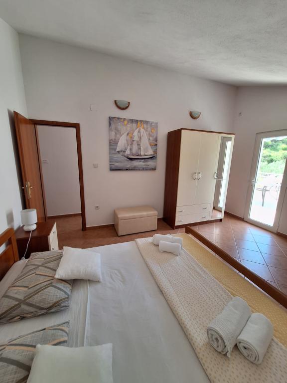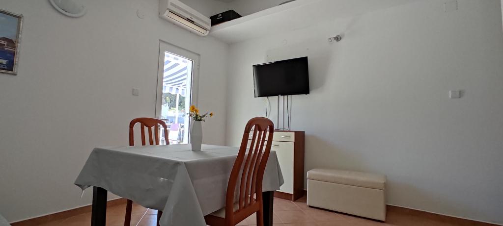 Unsere Apartments befinden sich in Donja Krušica auf der Insel Šolta. Ein Apartment befindet sich im Erdgeschoss und das andere im ersten Stock des Hauses, in erster Reihe zum Meer in einer ruhigen Bucht. Der nächste Strand befindet sich direkt neben dem Haus und 5 Gehminuten entfernt liegt der zweite Strand, wo Sie das kristallklare Meer genießen können. Das Apartment im ersten Stock besteht aus einem Schlafzimmer, einer ausgestatteten Küche mit Essbereich, einem Badezimmer und einer schönen Terrasse. Zur weiteren Ausstattung gehören eine Klimaanlage, ein Fernseher und eine Waschmaschine. Das Apartment im Erdgeschoss besteht ebenfalls aus einem Schlafzimmer, einer ausgestatteten Küche mit Essbereich und einem Badezimmer. Die Terrasse des Apartments im Erdgeschoss bietet Meerblick. Es gibt auch einen Fernseher mit Annehmlichkeiten wie Netflix. Das Apartment im Erdgeschoss verfügt über eine Klimaanlage und einen Deckenventilator zur Kühlung.