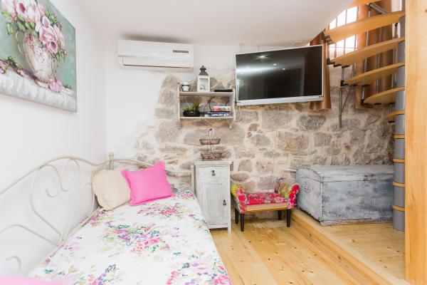 Dama ist ein kleines dalmatinisches Haus im Stadtzentrum, in ruhiger Lage. Das Haus bietet Platz für 3 Personen. Es besteht aus einem Erdgeschoss mit Küche, Wohnzimmer und Badezimmer, dann einem niedrigen Dachboden mit einem Schlafzimmer und einem Garten mit Sofa. Der Gastgeber wohnt nicht dort, steht Ihnen aber jederzeit zur Verfügung. Kommen Sie und verbringen Sie einen unvergesslichen Urlaub. Wir haben keinen privaten Parkplatz! Öffentlicher Parkplatz in unmittelbarer Nähe des Hauses.