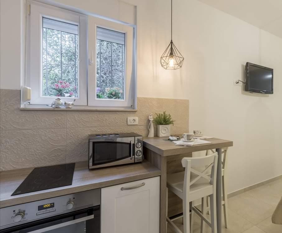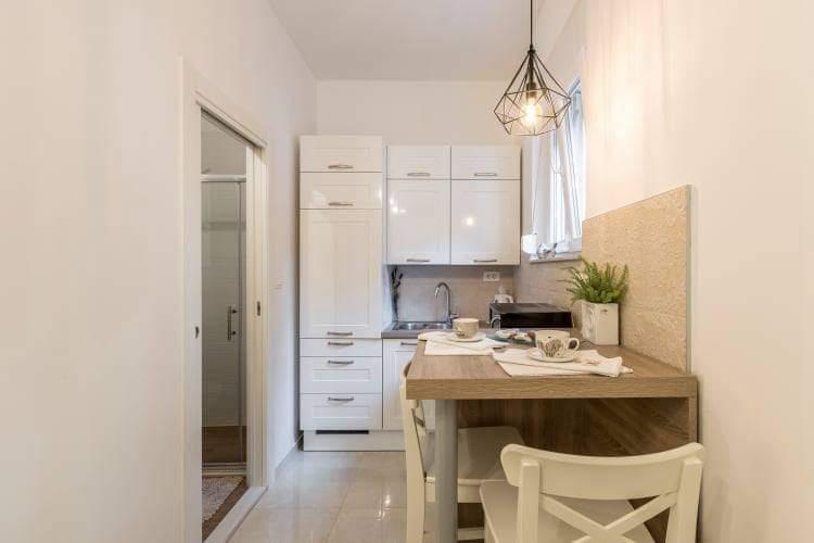 Neu renoviertes Studio-Apartment in Split, Bačvice. Es liegt in unmittelbarer Nähe des berühmtesten Stadtstrandes. Alle notwendigen Einrichtungen befinden sich in einer Entfernung von bis zu 100 m. Die Anlage liegt 5 Gehminuten von der Uferpromenade und dem Diokletianpalast entfernt, der auf jeden Fall einen Besuch wert ist. Vor der Wohnung steht eine große Terrasse zur Nutzung bereit. Der Parkplatz befindet sich neben dem Gebäude auf einem öffentlichen Gelände.