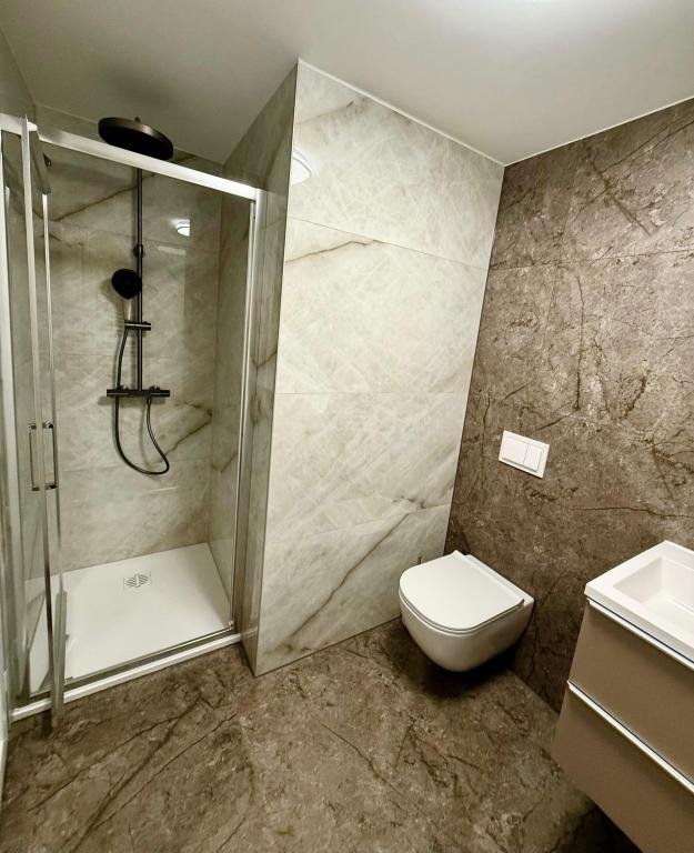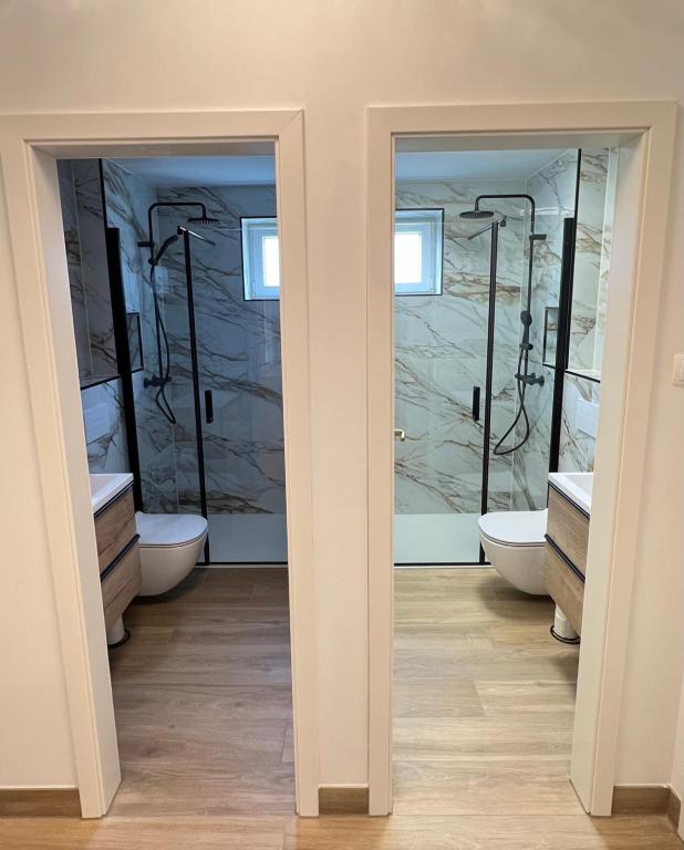 Ein wunderschönes, modernes und sauberes Haus mit drei Wohnungen, die wir für 17 Personen gemietet haben – es gab viel Platz. Jede Wohnung hatte eine eigene Spülmaschine und jedes Schlafzimmer eine Klimaanlage. Große Terrassen mit großen Tischen, perfekt für gemeinsame Mahlzeiten. Der Betonstrand ist nur 50 Meter entfernt, der Kieselstrand etwa 400 Meter. Sreser ist ein ruhiger Ort mit wenigen Touristen und wunderschönen, wilden Inseln gegenüber dem Strand. Der Besitzer war sehr nett und hilfsbereit – obwohl er uns nicht persönlich treffen konnte, stand er über WhatsApp in ständigem Kontakt. Sehr empfehlenswert!
