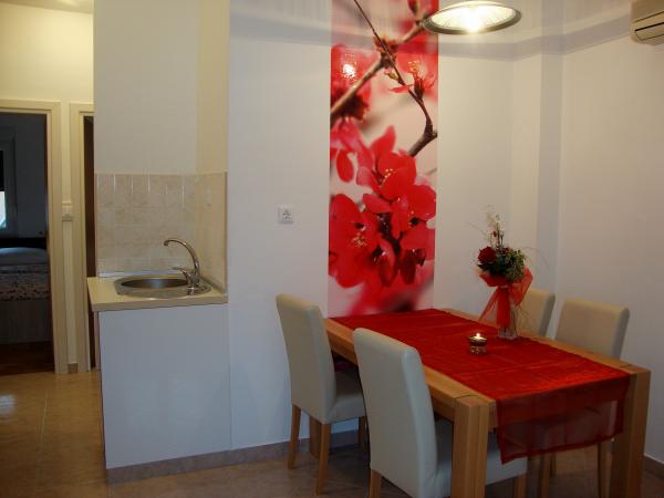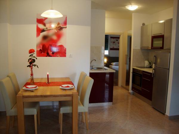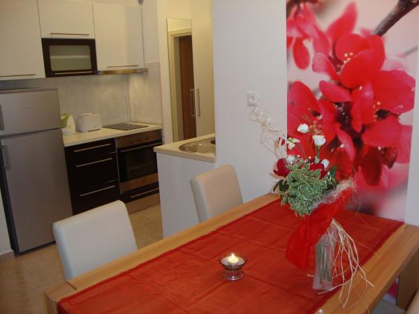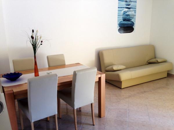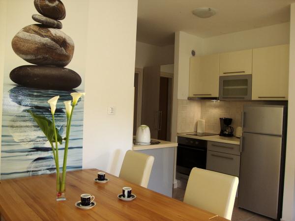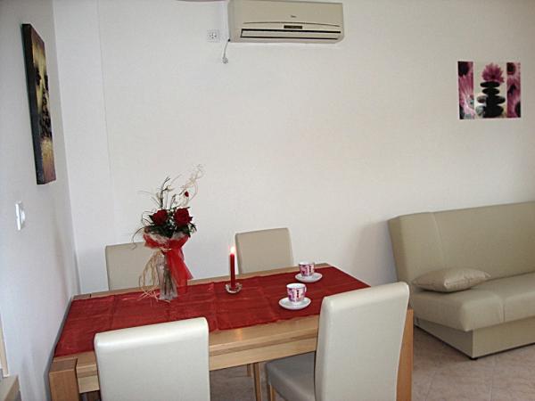 Voll ausgestattete und moderne Apartments in einer ruhigen Gegend von Srima (Vodice), befindet sich 100 m vom Meer entfernt. TV - Sie sind mit Klimaanlage, kostenlosen WLAN-Internetzugang (W-LAN) und Sat ausgestattet. Das Badezimmer verfügt über eine Hydromassage-Dusche und Fön. Sie haben Zugang zu einem Garten und kostenfreien Grillplatz. Alle Wohnungen verfügen über eine Terrasse mit Blick auf das Meer. Die Anlage befindet sich kostenfreie Parkplätze. Die Anlage befindet sich nur wenige Gehminuten vom Zentrum entfernt.