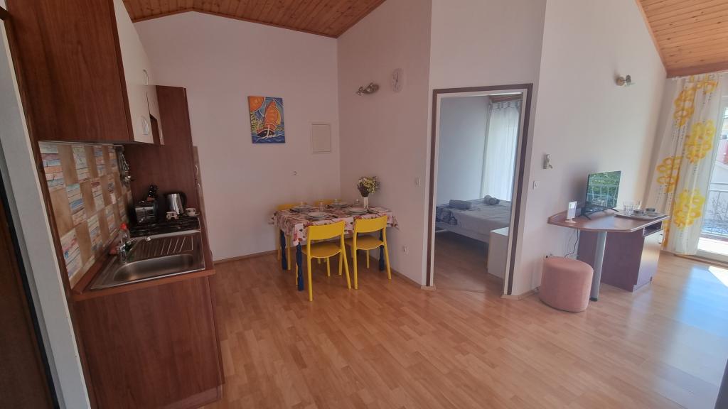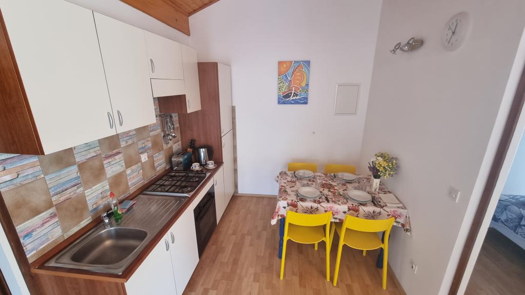 Die Apartments befinden sich im Vorort Srima von Vodice. Wir bieten drei Apartments an. Im ersten Stock unseres Hauses befinden sich zwei Apartments (2 Schlafzimmer, 2 Bäder) und im Erdgeschoss ein Studio-Apartment (2 Schlafzimmer, 1 Bad). Alle Apartments sind klimatisiert und verfügen über einen schattigen Parkplatz. Im Garten gibt es einen Grillplatz und einen Kinderspielplatz. Das Haus liegt in einer ruhigen Seitenstraße und bietet daher viel Privatsphäre. Der Strand ist 200 m und ein Geschäft 150 m entfernt. Das Stadtzentrum von Srima erreichen Sie nach 500 m und das Zentrum von Vodice nach etwa 2 km (ca. 20 Gehminuten).