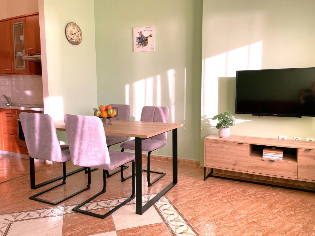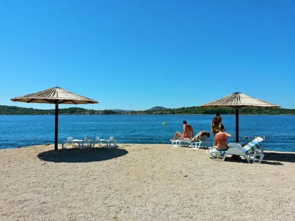 Kurtaxe ist im Preis inbegriffen.Die Lage der Wohnung ist top! 60 Meter zum Strand. Leider waren Hunde am Strand nicht erlaubt, so sind wir gezwungen jeden Tag woanders hinzufahren. Restaurants und Bäckerei sind in der Nähe, man läuft ca. 200 m Die Wohnung ist sehr sauber und der Vermieter und seiner Familie hat uns sehr freundlich empfangen! Die Aussicht aus dem Balkon ist wunderschön. Es gibt draußen auf dem Parkplatz auch noch eine Wasserentnahmestelle, sehr vorteilhaft!