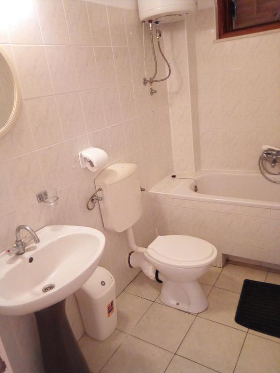 Das Sommerhaus ist der ideale Ort für einen angenehmen und unbeschwerten Urlaub und zum unbeschwerten Schwimmen im sauberen und kristallklaren Meer. Das Haus liegt direkt am Strand – 10 m vom Strand entfernt. Dieser ist mit einer Reihe von Tamarisken geschmückt und betoniert, die für den nötigen Schatten sorgen. Hier können Sie entspannen und den Blick auf das saubere und kristallklare Meer und den Meeresduft genießen. In der Nähe befinden sich Restaurants, Konditoreien und Lebensmittelgeschäfte. Der großzügige Garten mit Kiwi-Schatten ist ein idealer Parkplatz für Ihr Auto. Die Außendusche im Garten mit Warmwasser lädt zum Duschen nach dem Schwimmen und Baden ein. Im Garten befindet sich auch ein tragbarer Grill. Die Apartments sind komfortabel, mit allen notwendigen Geräten ausgestattet und praktisch für einen angenehmen Aufenthalt während der Sommerferien. Großzügige, überdachte Terrassen mit Meerblick und Schatten den ganzen Tag über stehen Ihnen für einen angenehmen Aufenthalt und Erholung zur Verfügung. Besonders wichtig ist die nächtliche Ruhe, die dieses Haus bietet. Alles ist praktisch und nah, sodass Sie sich nicht zu Fuß aufhalten müssen.