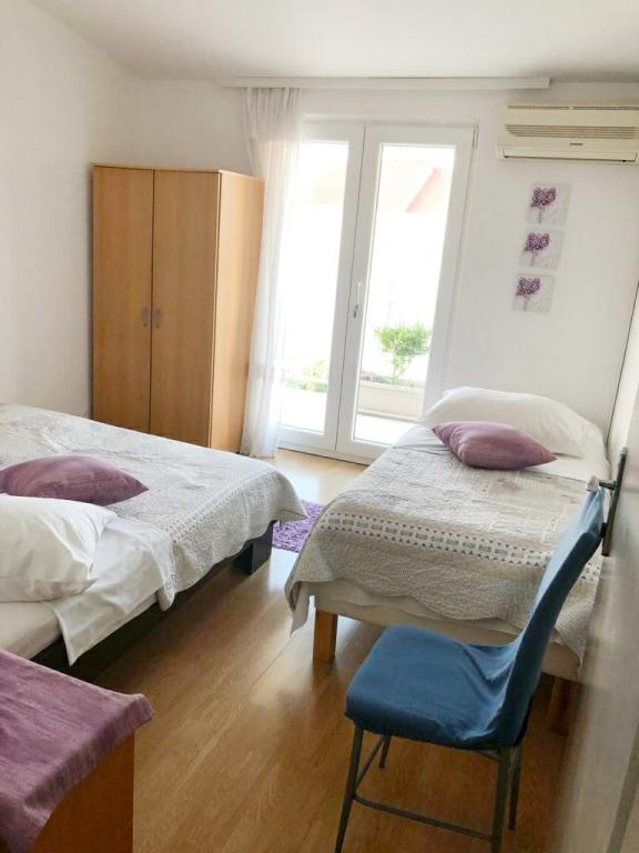 Die Apartments sind ausgestattet und modern und befinden sich in einem kleinen und ruhigen Ort Srima. Die Apartments bieten Meerblick und sind 2 Gehminuten vom Strand und dem Stadtzentrum entfernt. Die Apartments befinden sich im ersten und zweiten Stock eines Familienhauses. Die Apartments verfügen über zwei Schlafzimmer mit Zustellbetten, eine Küche mit Wohnzimmer, ein Bad und einen Balkon mit Meerblick. Sie enthalten auch Klimaanlage, Internet, Sat-TV, Herd, Kühlschrank, Wasserkocher sowie Geschirr und Bettwäsche. Dank ihrer Größe und ihres Komforts sind die Apartments ideal für große Familien, die Ruhe, Schatten, Nähe zum Strand und einen unvergesslichen Sonnenuntergang wünschen!
