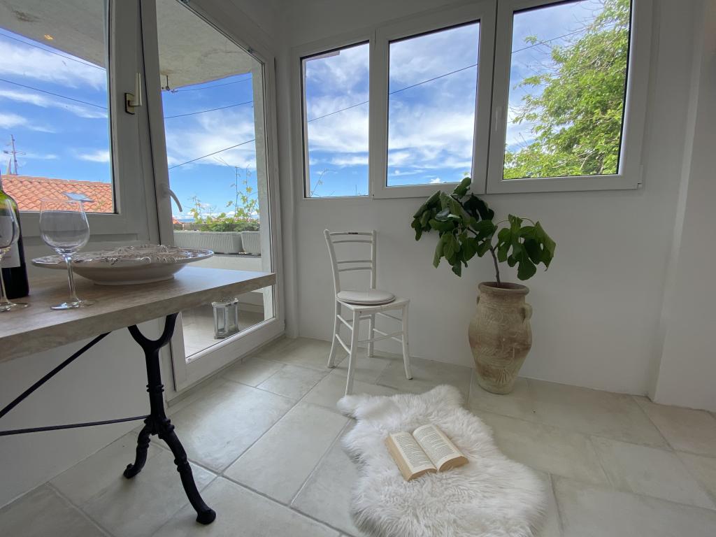 Das Haus liegt 50 Meter vom Sand- und Kiesstrand entfernt. Am Strand herrscht kein Gedränge und das Meer ist kristallklar. Im Haus befinden sich zwei Wohnungen. Die Wohnung ist neu renoviert und komplett ausgestattet. Die Wohnung verfügt über zwei Schlafzimmer mit einem Doppelbett, eine voll ausgestattete Küche, ein Badezimmer und einen Balkon mit Blick auf das Meer. Ein Parkplatz steht 100 m vom Haus entfernt zur Verfügung.
