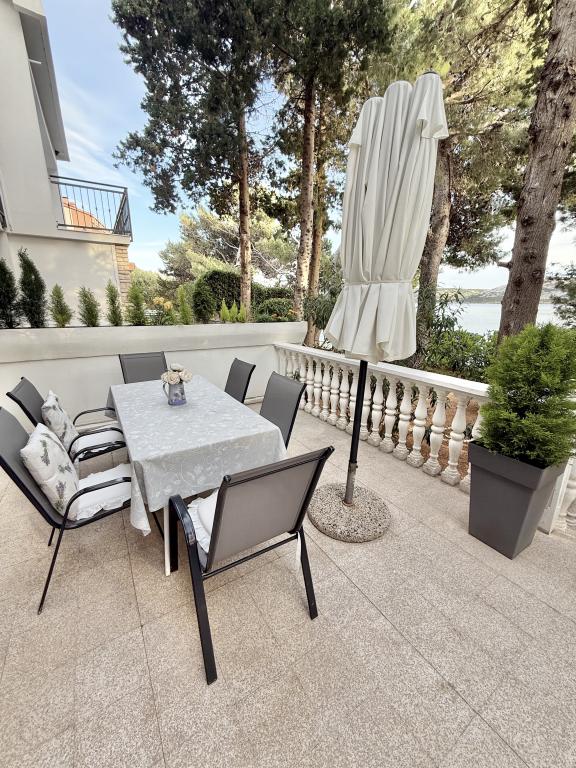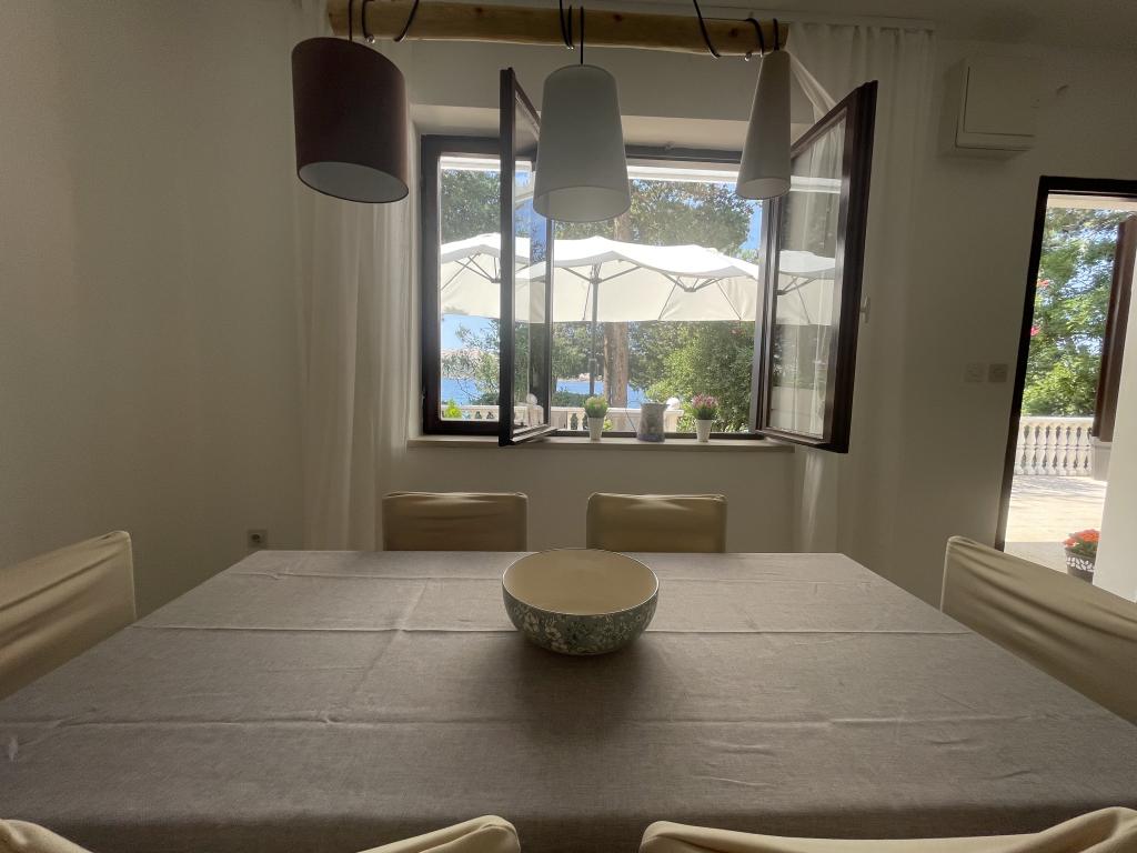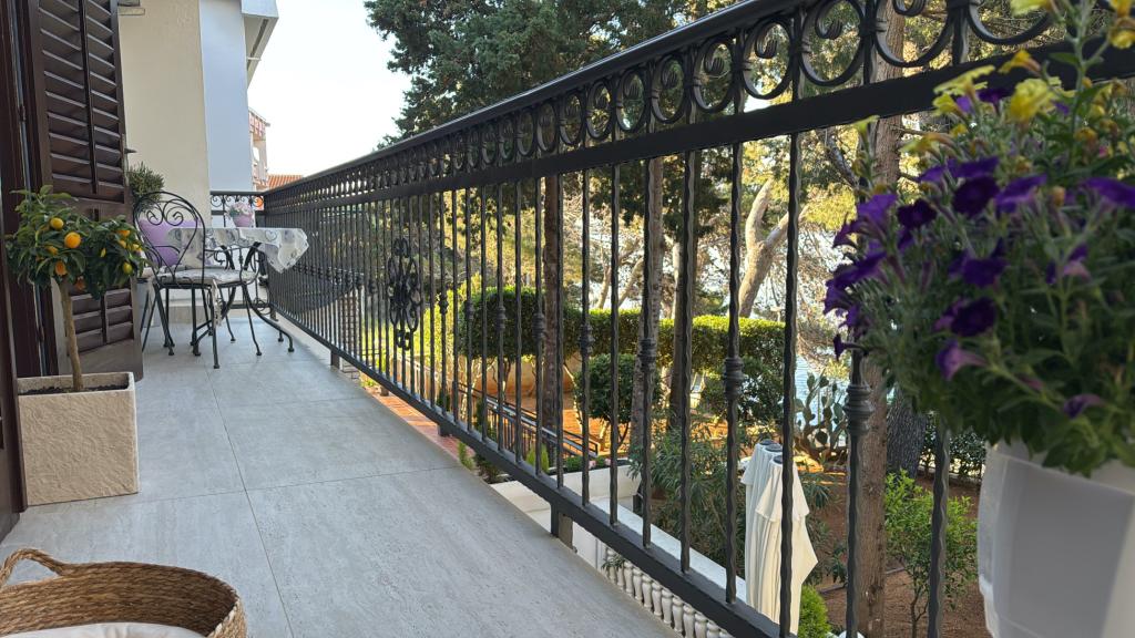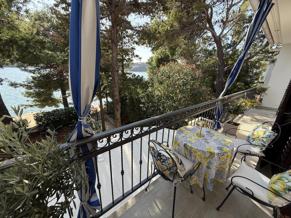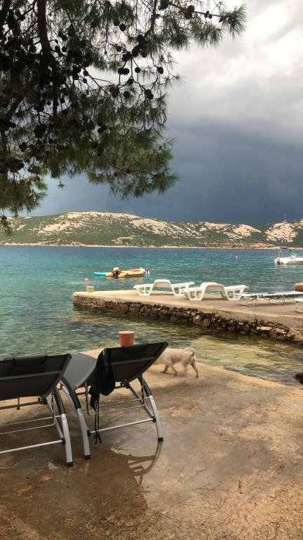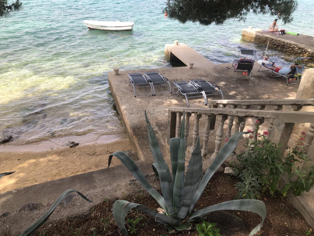 Alle 4 Apartments nutzen einen Privatstrand vor dem Haus mit Liegestühlen, Dusche und Kiefernschatten. 1. Apartment A4+2 im Erdgeschoss eines romantischen Hauses, erste Reihe zum Meer (10 m). Es verfügt über zwei Schlafzimmer und ein Schlafsofa im Wohnzimmer. Das Apartment bietet Zugang zu einer eigenen großen Terrasse mit wunderschönem Meerblick. Ideal für eine Familie mit Kindern sowie für eine Gruppe von bis zu 5 Freunden. Es ist möglich, Apartment A4+1 im ersten Stock im selben Haus zu mieten und das gesamte Haus zu nutzen. 2. Apartment A4+1 im 1. Stock verfügt über 2 Schlafzimmer und ein Zusatzbett im Wohnzimmer. Es verfügt über einen Balkon mit fabelhafter Aussicht und eine private Terrasse von 20 m². 3. Das Studio-Apartment befindet sich in einem anderen, kleineren Haus im Garten hinter dem ersten Haus, 30 Meter vom Meer entfernt. 4. Apartment A2+2 befindet sich in einem anderen, kleineren Haus im Garten hinter dem ersten Haus, 30 Meter vom Meer entfernt. Ruhe und Privatsphäre, insbesondere im Juni und September, sind die Vorteile dieser Apartments, von denen viele sagen, dass sie wie der Himmel auf Erden sind. Haustiere sind nicht erlaubt (kleine Hunde bis 7 kg auf Anfrage).