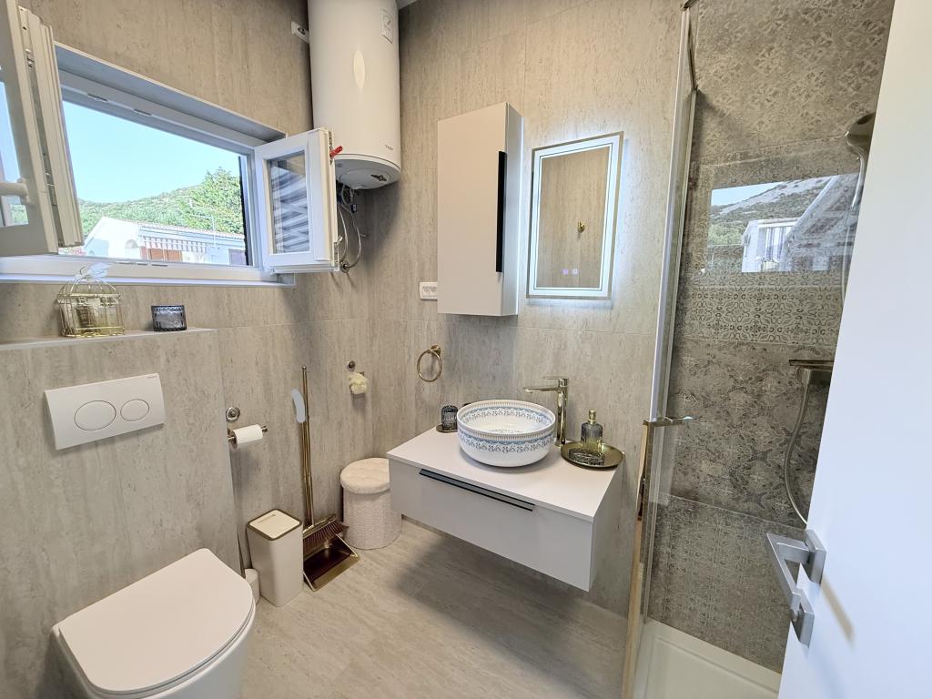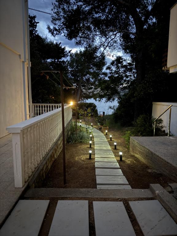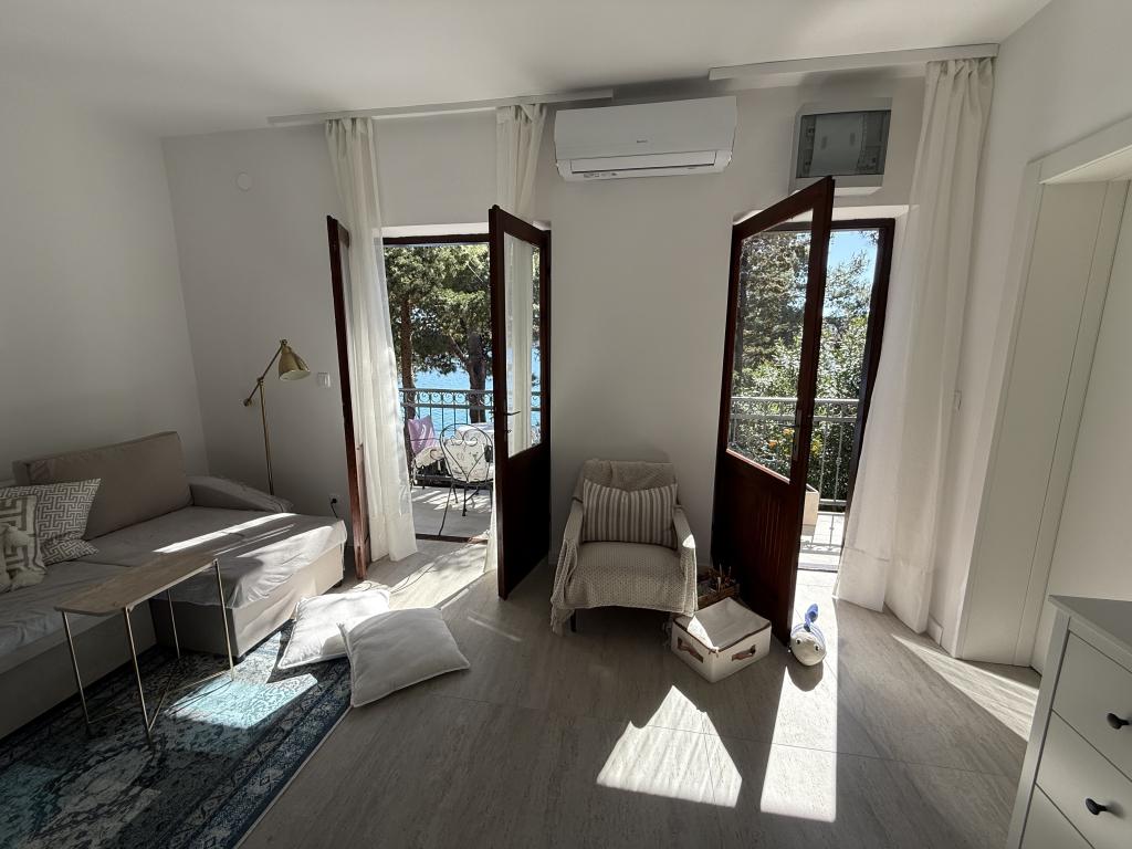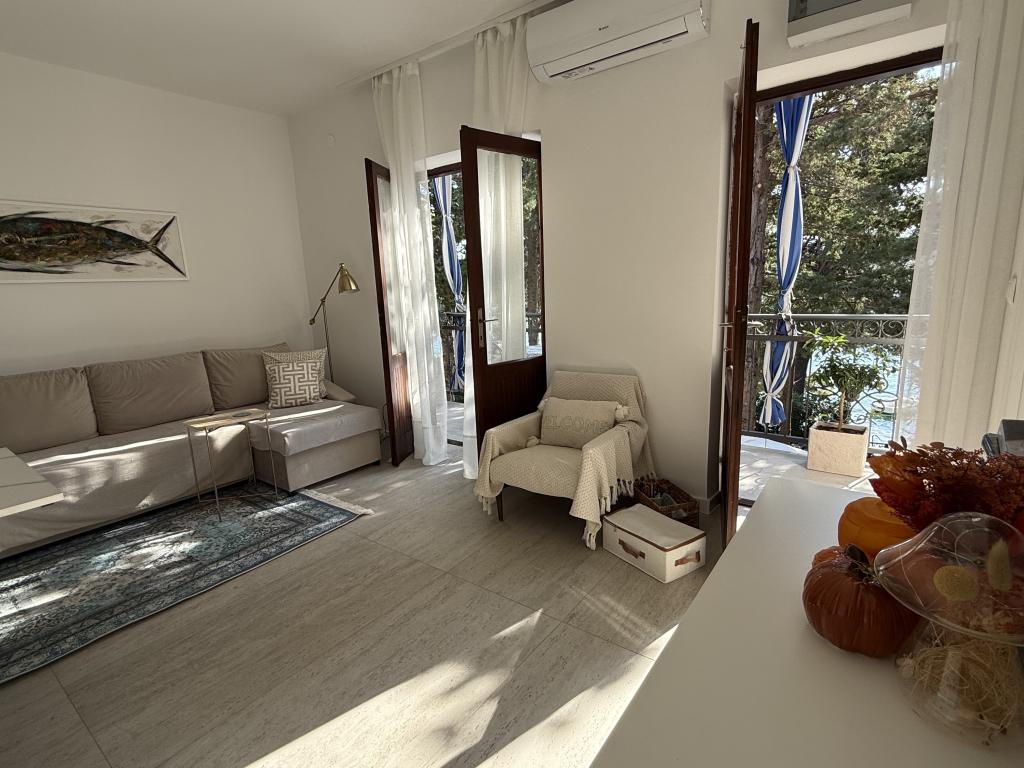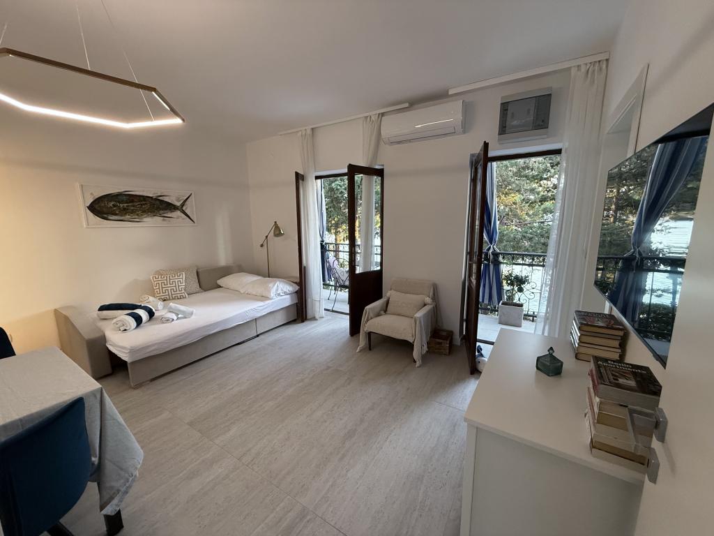 Alle 4 Apartments nutzen einen Privatstrand vor dem Haus mit Liegestühlen, Dusche und Kiefernschatten. 1. Apartment A4+2 im Erdgeschoss eines romantischen Hauses, erste Reihe zum Meer (10 m). Es verfügt über zwei Schlafzimmer und ein Schlafsofa im Wohnzimmer. Das Apartment bietet Zugang zu einer eigenen großen Terrasse mit wunderschönem Meerblick. Ideal für eine Familie mit Kindern sowie für eine Gruppe von bis zu 5 Freunden. Es ist möglich, Apartment A4+1 im ersten Stock im selben Haus zu mieten und das gesamte Haus zu nutzen. 2. Apartment A4+1 im 1. Stock verfügt über 2 Schlafzimmer und ein Zusatzbett im Wohnzimmer. Es verfügt über einen Balkon mit fabelhafter Aussicht und eine private Terrasse von 20 m². 3. Das Studio-Apartment befindet sich in einem anderen, kleineren Haus im Garten hinter dem ersten Haus, 30 Meter vom Meer entfernt. 4. Apartment A2+2 befindet sich in einem anderen, kleineren Haus im Garten hinter dem ersten Haus, 30 Meter vom Meer entfernt. Ruhe und Privatsphäre, insbesondere im Juni und September, sind die Vorteile dieser Apartments, von denen viele sagen, dass sie wie der Himmel auf Erden sind. Haustiere sind nicht erlaubt (kleine Hunde bis 7 kg auf Anfrage).