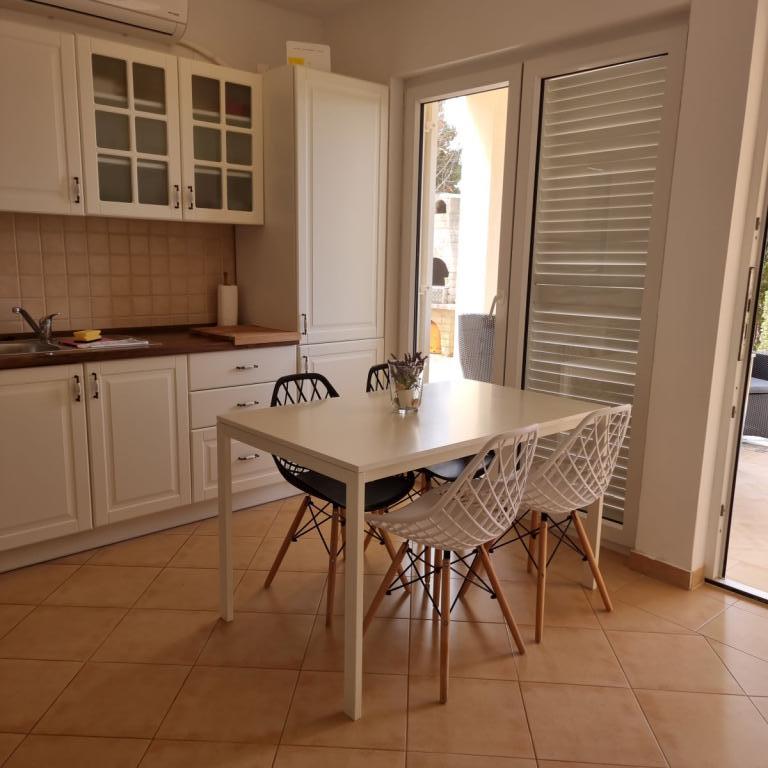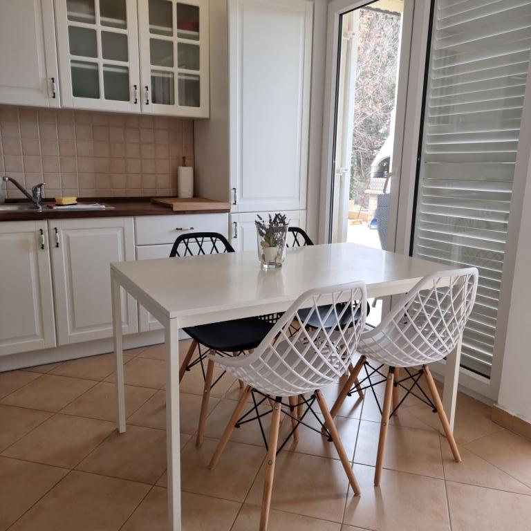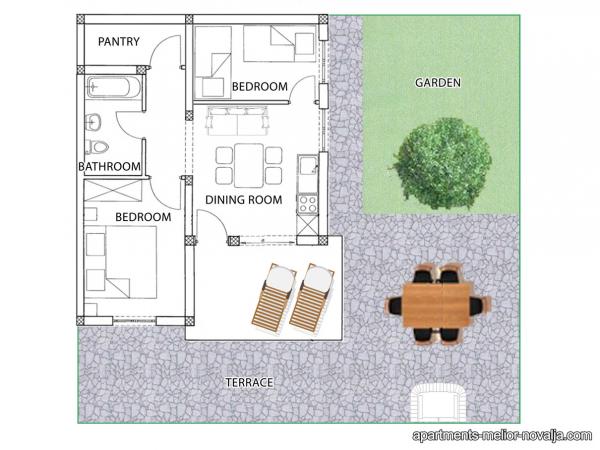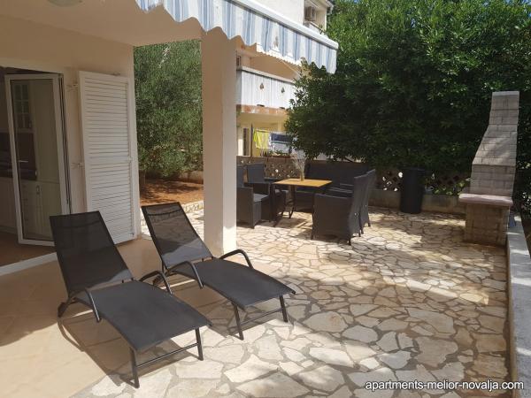 Das Apartment Melior ist sehr geräumig und hübsch eingerichtet. Es befindet sich im Erdgeschoss des Hauses und verfügt über einen separaten Eingang, eine geräumige Terrasse mit Grill sowie einen Sitz- und Sonnenbereich auf den Sonnenliegen. Ausgestattet mit allem, was Sie brauchen und alles in der Nähe der Apartments. Großartige Lage, nur 70 m vom schönen Sandstrand Uljak, 30 m von der örtlichen Strandbar, 600 m von den örtlichen Geschäften und 700 m vom schönen Restaurant entlang der Taverne Porat entfernt. In der Nähe der Wohnung gibt es eine schöne Promenade entlang der Küste entlang des gesamten Stare Novalja. Die Wohnung ist in erster Linie für einen ruhigen Familienurlaub gedacht (Familie mit Kindern) und nicht für Personen, die am beliebten Strand Zrće spielen möchten.