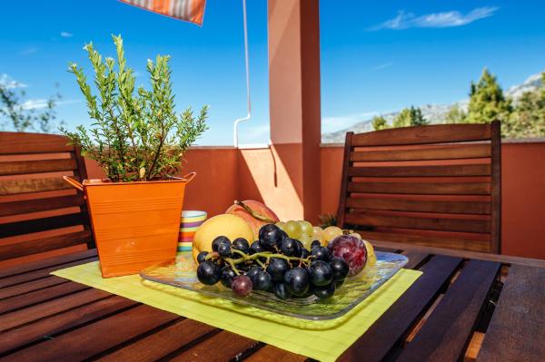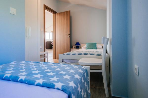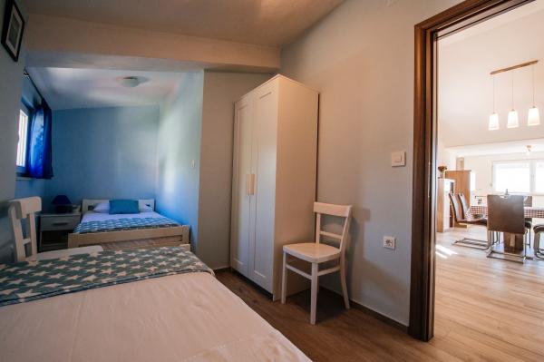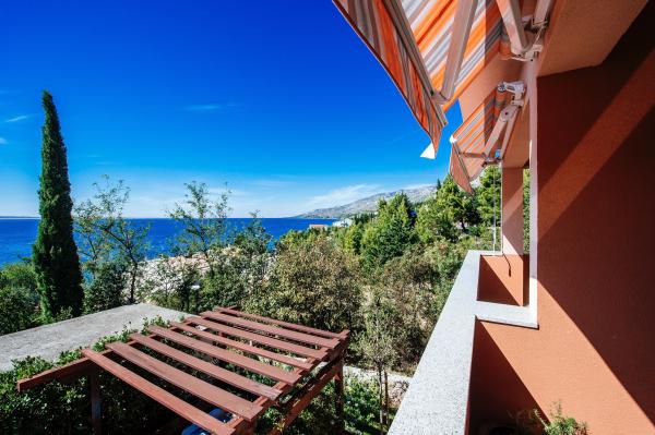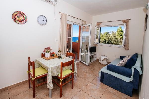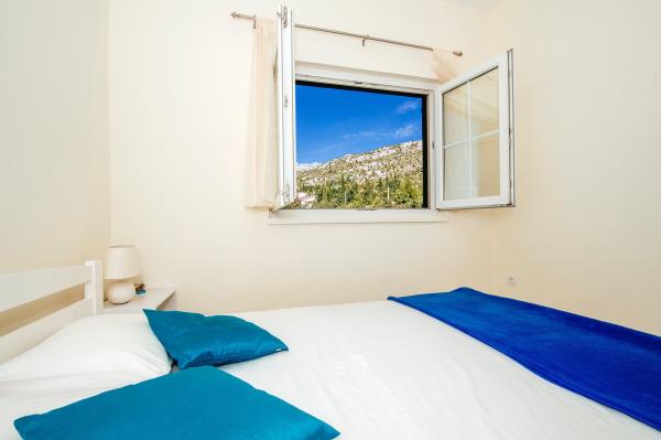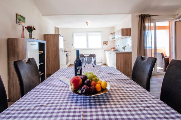 modern ausgestattete Apartments mit Balkon, zwei Schlafzimmern und Wohnzimmer mit Küche, Meerblick in einem ruhigen Teil von Starigrad. 60 m vom Meer und 1,5 km vom Nationalpark entfernt. Entfernung vom Zentrum 500 m. Parkplatz im Hof vorhanden.