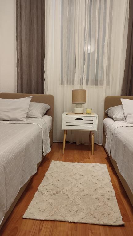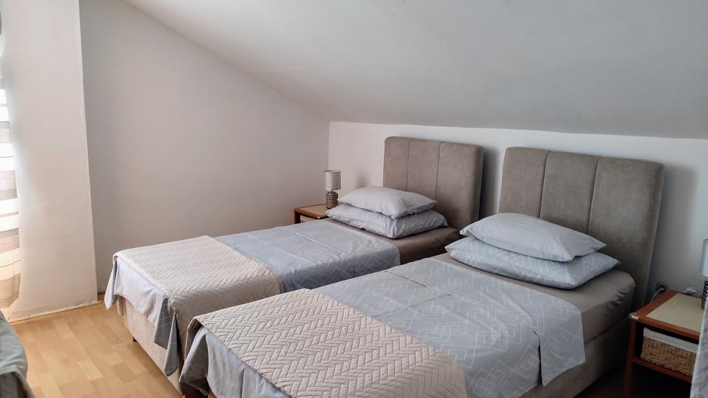Das Ferienhaus Beli liegt in der Gegend von Starigrad Paklenica (Triverie) – Tribanj. Starigrad und der Nationalpark Paklenica sind in 15 Autominuten erreichbar. Wir bieten zwei modern ausgestattete Apartments mit je zwei Schlafzimmern und einer Größe von 65 m². Die Apartments sind klimatisiert und verfügen über WLAN, Sat-TV und große Terrassen mit herrlichem Blick auf das Meer und die Insel Pag. Zum Haus gehören ein großer, umzäunter Garten, ein Grillplatz und kostenlose Parkplätze. In der Bucht gegenüber, nur 20 m vom Haus entfernt, befindet sich ein betonierter Strand mit kristallklarem Wasser. In Tribanj und Umgebung finden Sie gut sortierte Geschäfte, kleinere Strände und Restaurants mit Grill- und Fischgerichten. Starigrad, nur 10 Autominuten vom Haus entfernt, bietet ein vielfältiges Angebot. Das Haus liegt ruhig und abgeschieden in einer Bucht inmitten unberührter Natur. Es ist ideal für einen Familienurlaub oder Treffen mit Freunden. Die Wohnungen sind separat, jede hat ihren eigenen Eingang zum Wohnbereich!!!!