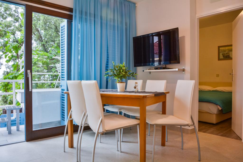 Kurtaxe ist im Preis inbegriffen.Um unser Angebot zu erweitern und Ihnen einen noch angenehmeren Aufenthalt zu ermöglichen, können Sie sich ab dem Jahr 2016 im Rahmen der Appartements auch im wundervollen Biodesign Pool entspannen, der sich nur wenige Meter von Ihrem Appartement befindet. Im Rahmen unserer Appartements können Gäste heimische Speisen genießen, die nach original kroatischen Rezepten zubereitet werden. Alle Speisen werden aus 100% frischen Zutaten und nur bei vorheriger Ankündigung des Kunden zubereitet. Zur Verfügung steht frischer Fisch aus der Adria, in den meisten Fällen am selben Tag gefangen. Es ist möglich das Frühstück und / oder das Abendessen zu arrangieren, je nach Ihren Anforderungen.