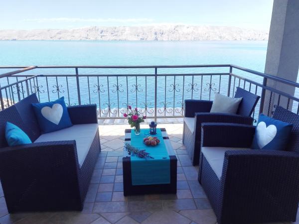 Sehr nette Besitzer, saubere und gemütliche Wohnung mit großzügigem Balkon mit Blick aufs Meer. Die Wohnung verfügt über eine perfekte Außenküche mit einem kühlen Sitzplatz und einer wunderbaren Entspannungsschaukel. Der Weg zum Strand unterhalb der Wohnung führt teils über Treppen, teils über einen Steinweg. Wir hatten fast einen Privatstrand. Das Wasser ist an diesen Stellen kühler, aber klar. Andere, wärmere Strände sind zu Fuß erreichbar oder nur eine kurze Fahrt/Schwimmen vom Ufer entfernt :-) Es gibt keinen Laden im Ort, aber jeden zweiten Tag, zweimal pro Woche, kommt ein Lieferwagen mit Gebäck von FamilyFrost. Größere Einkaufsmöglichkeiten ca. 20 km SvetiJuraj oder Senj. Für uns ein rundum erholsamer Urlaub!