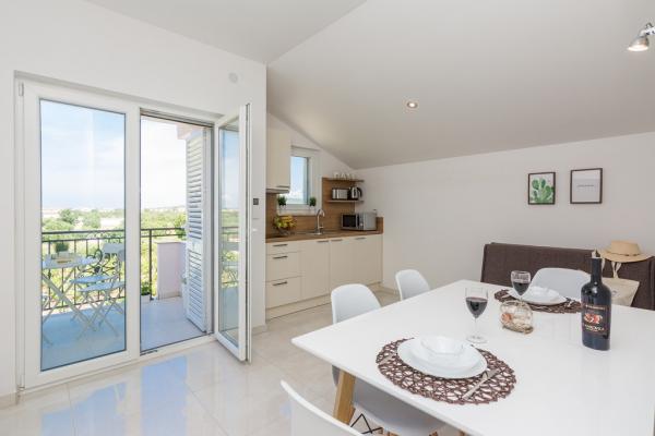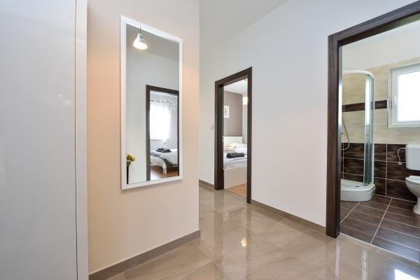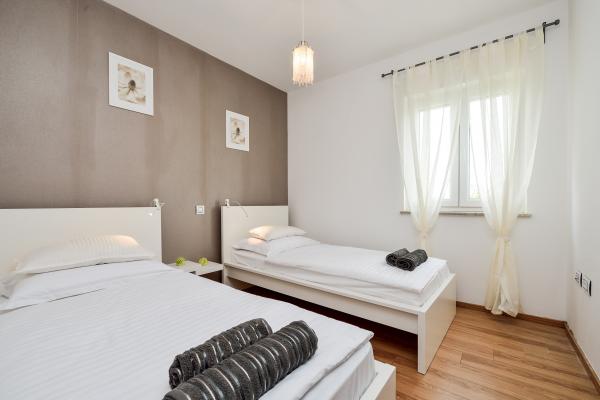 Die Wohnung ist modern eingerichtet, äußerst sauber und mit allem ausgestattet, was Sie im Haushalt benötigen. Jedes Zimmer verfügt über eine Klimaanlage (wir hatten sie noch nirgendwo). Die Gastgeber haben alle möglichen Anweisungen vorbereitet, um den Aufenthalt in der Wohnung zu erleichtern, und sie angerufen (z. Die nächstgelegenen Restaurants, Geschäfte, Orte, die Sie besuchen können, Preislisten für die Lieferung von Lebensmitteln ....), um hausgemachte Kräuter zu erwähnen, die Sie zu einem erschwinglichen Preis bei ihnen kaufen können, und großartig. Auf jeder Etage gibt es eine Ecke, in der Bücher, Bilderbücher, Puzzles und Spiele für Kinder arrangiert werden ... Der Strand ist ca. 150 m von der Wohnung entfernt. Die Gastgeber Kristina und Vinko sind sehr aufgeschlossen, freundlich und bereit, jede Frage zu beantworten. Hier senden wir ihnen Grüße und alles Gute !! Sanja, Damir und Mia