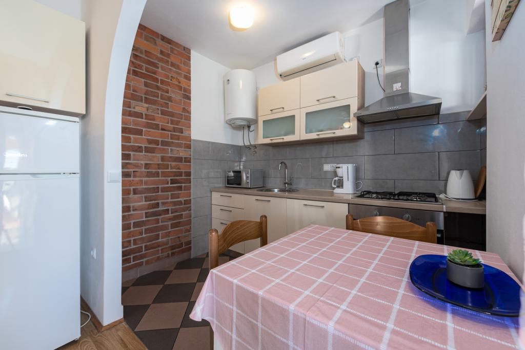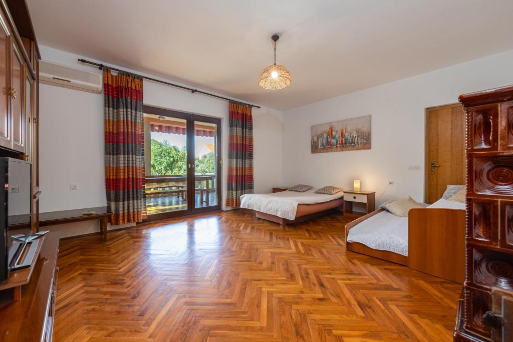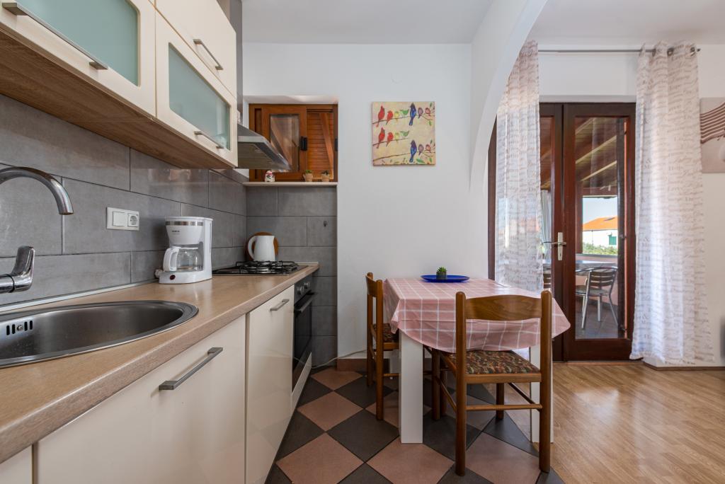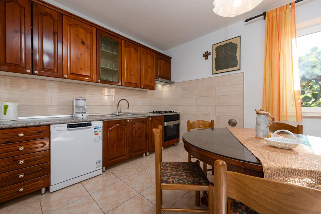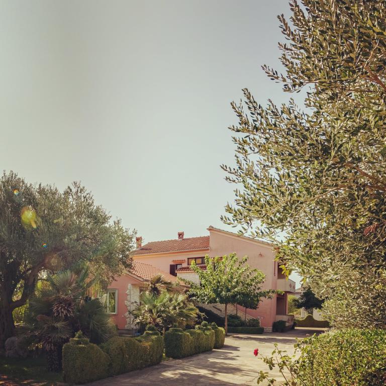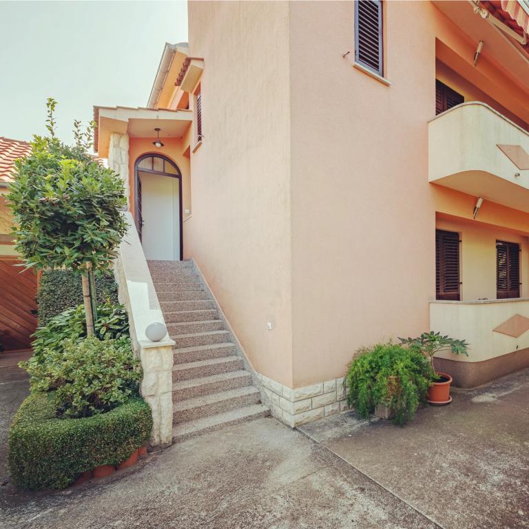Die Apartments DARIO befinden sich in Sukošan, 10 km südöstlich von Zadar. Die Siedlung selbst liegt an der Touristenstraße mitten an der kroatischen Adriaküste zwischen Zadar und Biograd. Sukošan ist ein friedlicher Ort mit klarem Meer, Sand- und Kiesstränden sowie gastfreundlichen Menschen und Tradition. Aus diesem Grund erkannten viele es als einen Ort für einen idealen Urlaub. Das Haus verfügt über vier Wohnungen. APP1 (Studio) ist ein Studio-Apartment im ersten Stock. APP2 (A2+1) ist ebenfalls ein Studio mit einer großen überdachten Terrasse. APP3 (A5) ist eine Zweizimmerwohnung im ersten Stock mit Balkon. APP4 (A7) ist eine Dreizimmerwohnung im Erdgeschoss mit großer Terrasse. Im Hof des Hauses gibt es einen großen Parkplatz und einen Garten mit Schaukeln und Trampolin. Es gibt auch einen Grill und einen Liegeplatz für ein Boot am Meer. ENTFERNUNG - nächster Flughafen: Zadar (10 km) - nächste Autobahnanbindung: Mautstelle Zadar Ost - A1 (17 km) - nächster Fährhafen: Zadar (14 km)