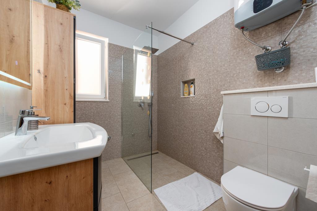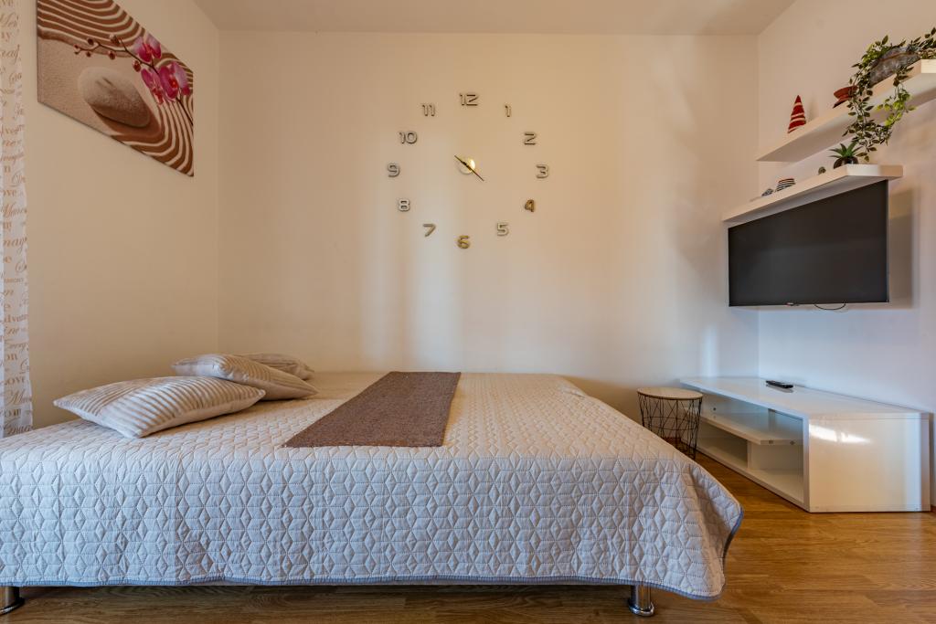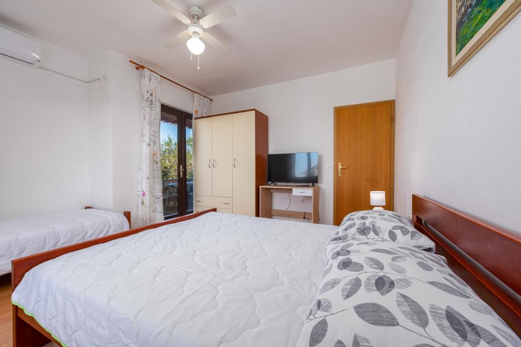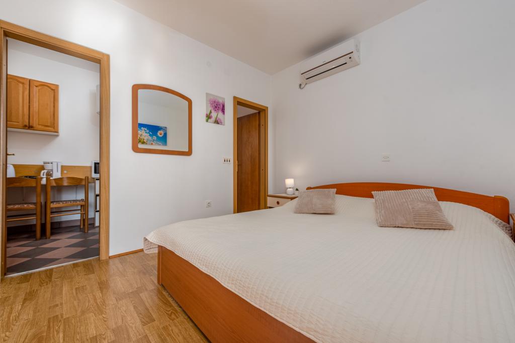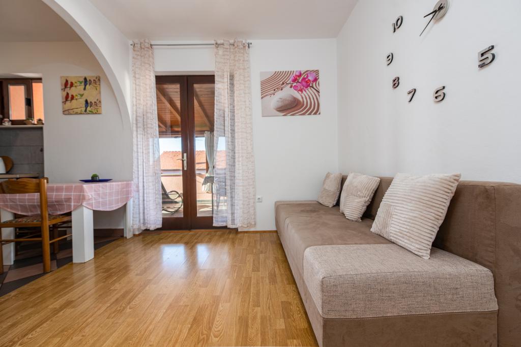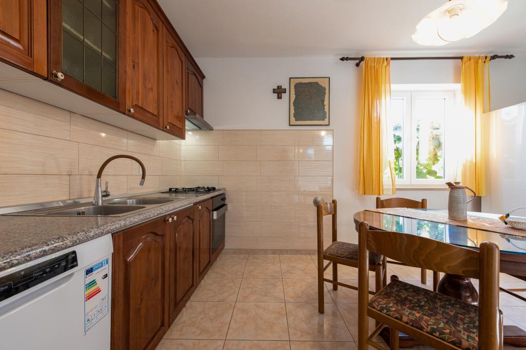 Die Apartments DARIO befinden sich in Sukošan, 10 km südöstlich von Zadar. Die Siedlung selbst liegt an der Touristenstraße mitten an der kroatischen Adriaküste zwischen Zadar und Biograd. Sukošan ist ein friedlicher Ort mit klarem Meer, Sand- und Kiesstränden sowie gastfreundlichen Menschen und Tradition. Aus diesem Grund erkannten viele es als einen Ort für einen idealen Urlaub. Das Haus verfügt über vier Wohnungen. APP1 (Studio) ist ein Studio-Apartment im ersten Stock. APP2 (A2+1) ist ebenfalls ein Studio mit einer großen überdachten Terrasse. APP3 (A5) ist eine Zweizimmerwohnung im ersten Stock mit Balkon. APP4 (A7) ist eine Dreizimmerwohnung im Erdgeschoss mit großer Terrasse. Im Hof des Hauses gibt es einen großen Parkplatz und einen Garten mit Schaukeln und Trampolin. Es gibt auch einen Grill und einen Liegeplatz für ein Boot am Meer. ENTFERNUNG - nächster Flughafen: Zadar (10 km) - nächste Autobahnanbindung: Mautstelle Zadar Ost - A1 (17 km) - nächster Fährhafen: Zadar (14 km)