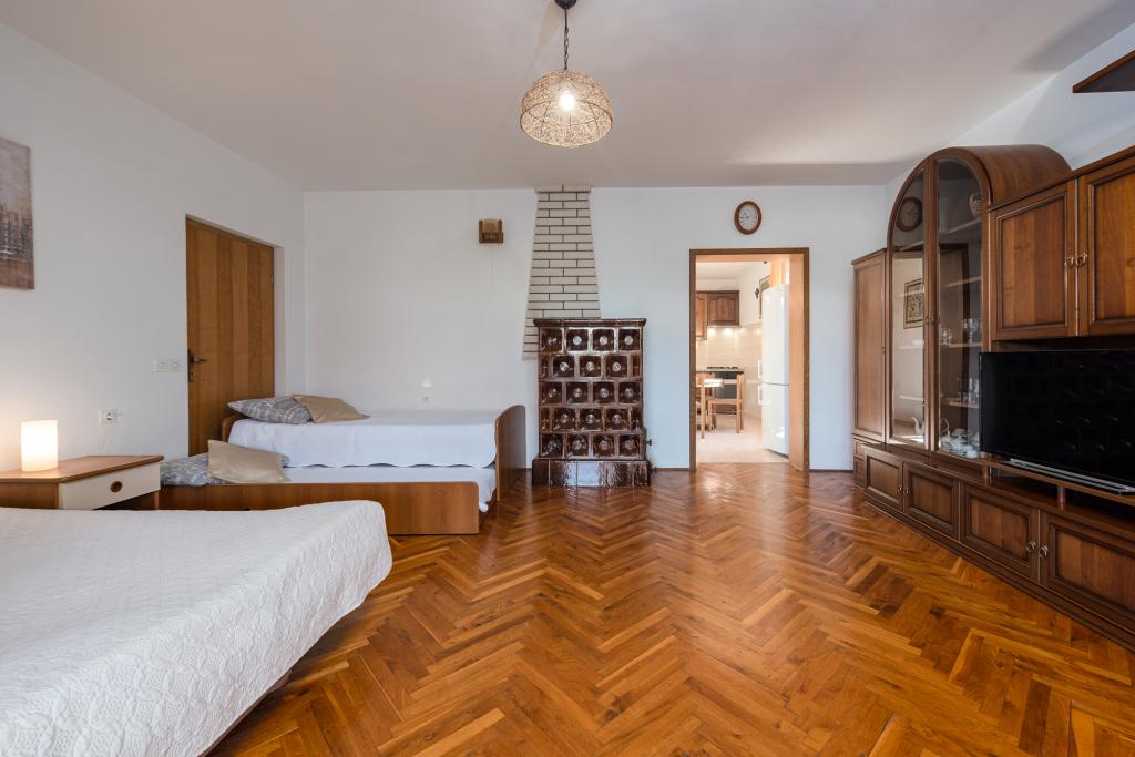 Ich würde diese Wohnung also allen zehn Personen empfehlen. Da mehrere Familien dort wohnten, kann ich alle Zimmer bewerten. Die Wohnungen sind gemütlich und sauber. Jede Wohnung hat eine Klimaanlage. Die Küchenzeile ist mit allem ausgestattet, was man braucht. Töpfe, Pfannen, Gläser, einfach alles. Die Besitzerin hat die Handtücher für uns gewechselt, was ich als großes Plus betrachte. Was den Außenbereich betrifft, war er für uns großartig, insbesondere für unsere Kinder. Schaukel, Trampolin, Sitzgelegenheiten im Garten, viel Grün und ein großer Hof. Und was die Besitzerin betrifft, sie ist eine tolle, freundliche, hilfsbereite und immer lächelnde Frau. Ich habe noch nie so eine Person in einer Wohnung getroffen. Ich kann sie nur empfehlen, es war großartig für uns und ich glaube, dass wir wieder dorthin zurückkehren werden.