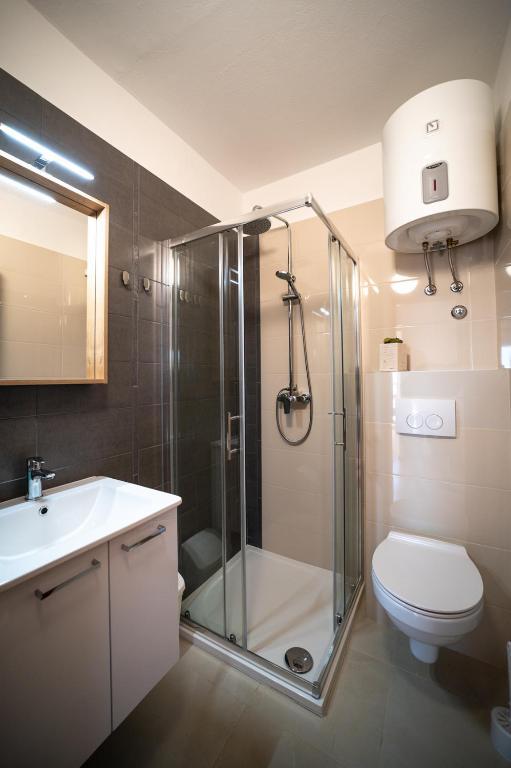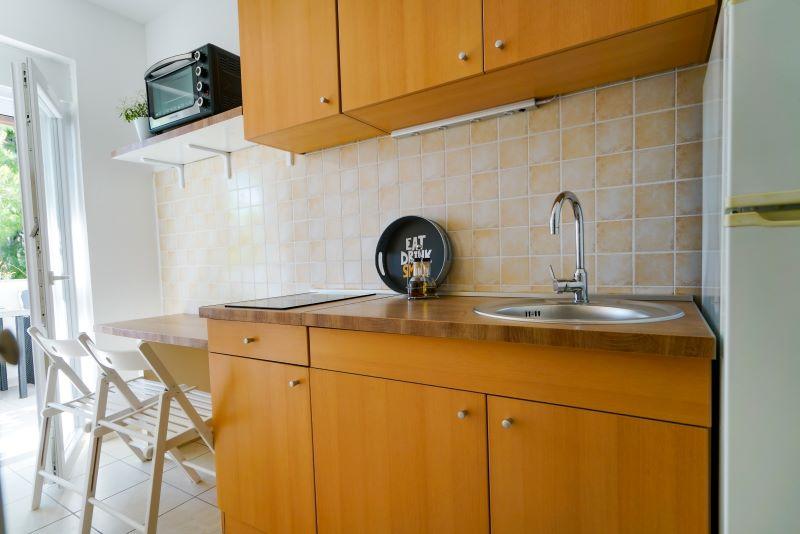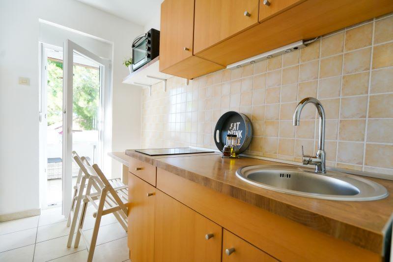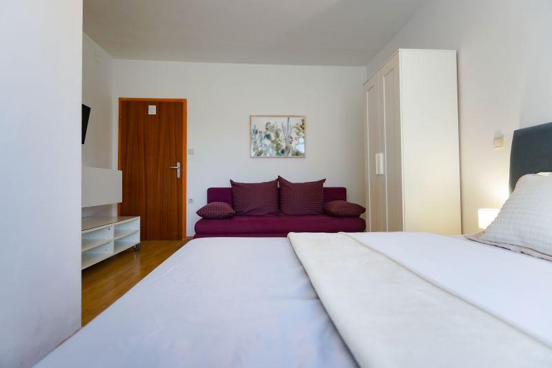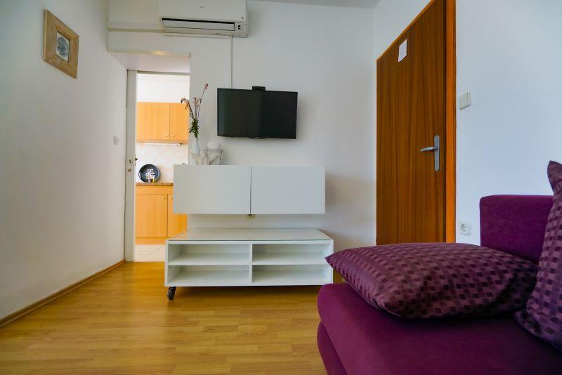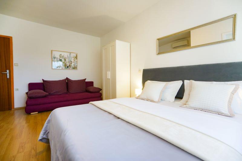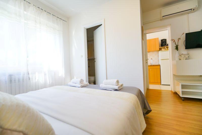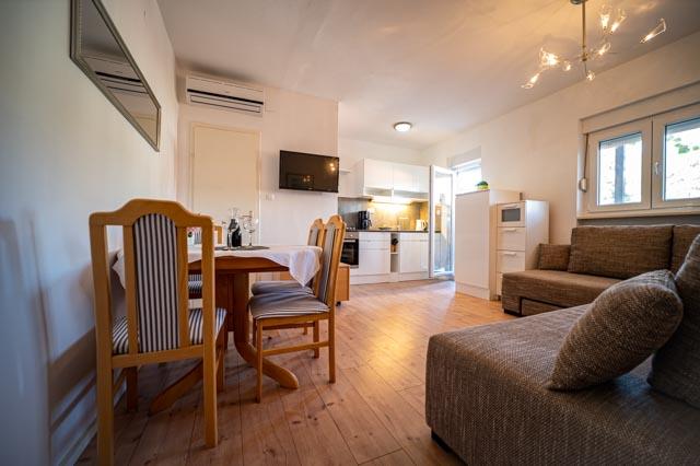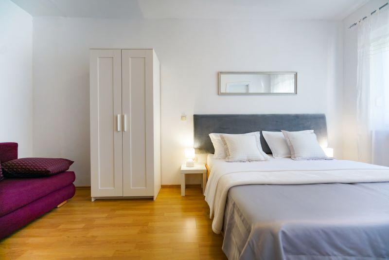 Nur 30 Meter vom neu renovierten Strand Mala Makarska entfernt! Die Apartments und Zimmer Ero befinden sich in Sukošan, nur wenige Meter vom Strand entfernt, und bieten ihren Gästen die Möglichkeit eines ruhigen Familienurlaubs. Die Anlage verfügt über 7 Wohneinheiten. Wir bieten Ihnen 4 Appartements, ein Studio-Apartment und zwei Zimmer. Jedes Apartment verfügt über eine Terrasse mit Meer- oder Gartenblick. Die Apartments verfügen über eine voll funktionsfähige Küche, LCD-Sat-Fernseher, Klimaanlage, Toilette und große Doppelbetten. Gäste, die in den Zimmern übernachten, können die Gemeinschaftsküche im Freien nutzen. Für jedes Apartment oder Zimmer stehen Parkplätze und WLAN-Internetzugang zur Verfügung. Im Hof befindet sich außerdem eine Sommerküche mit Grill, die allen Gästen zur Verfügung steht. In der Nähe der Wohnung gibt es Geschäfte, Restaurants, Strandbars, Kinderspielplätze, Fast Food...